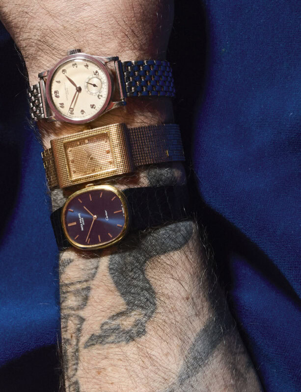 Now, just over three years since starting his TikTok, Nouveau has cemented his position in this industry, just as he did in the world of nightlife more than a decade ago. He has established his reputation as a vintage dealer with clients such as the actor and model Luka Sabbat, co-founded the watch-marketplace app Pushers and been flown around the world by brands like Hermès and Cartier, whose cachet he has helped inject into the popular imagination of the downtown scene through endless promotion of their vintage models. This year was his second time attending the invite-only Watches and Wonders in Geneva, the world’s premier watch fair. Fans of his TikTok come for the luxury timepieces but stay for the quick wit and the no-filter approach to this otherwise very closed-off world that was, until the pandemic, not inclusive of ‘outsider’ characters like Nouveau.
