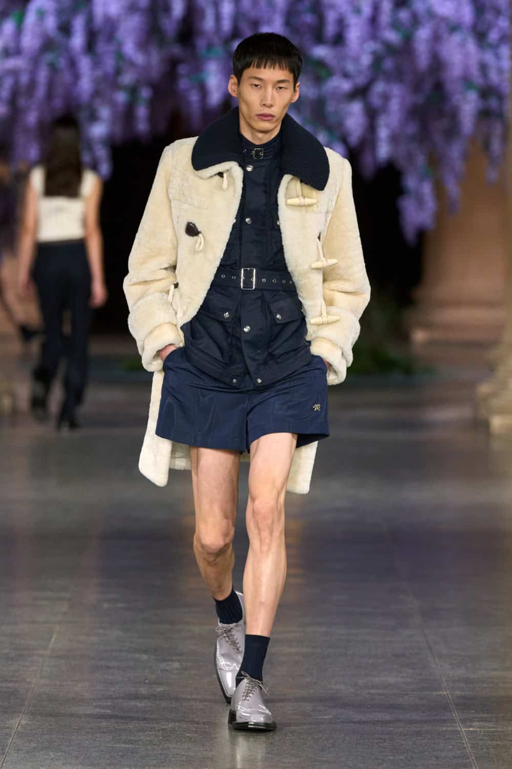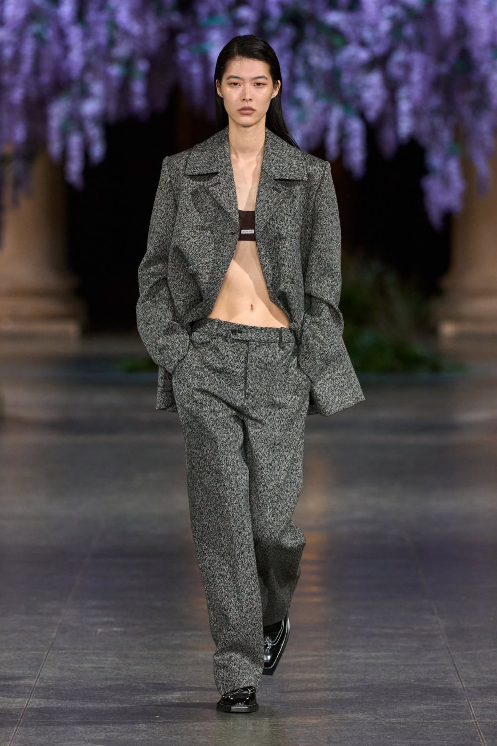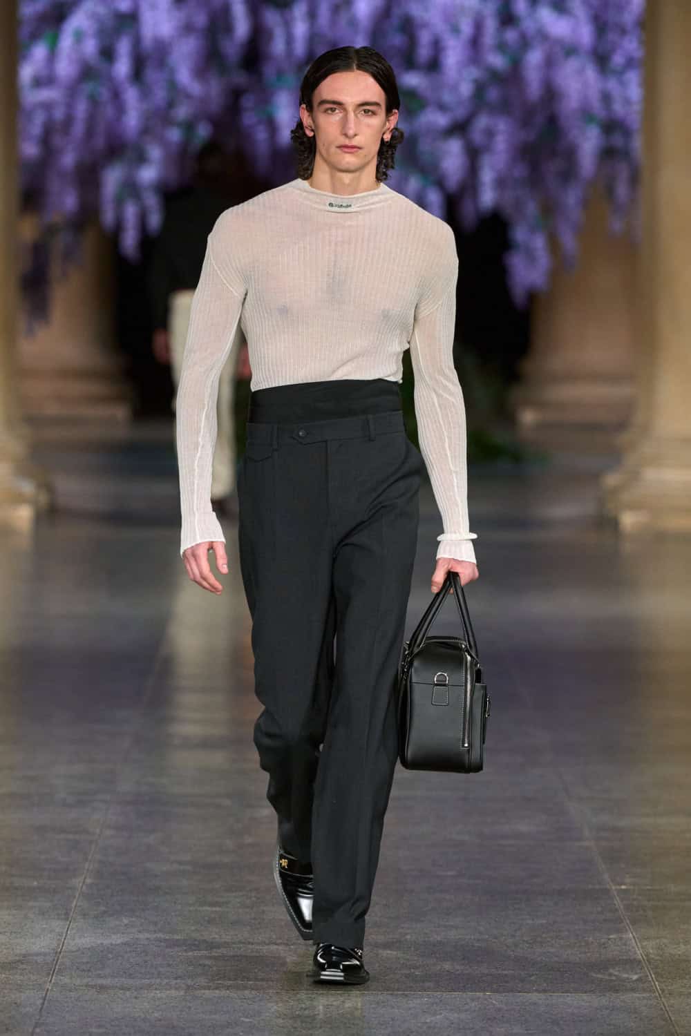 It’s freshly grown Brit roots branched out, comprehensively embracing all of the AW26 collection, from fabric choices to design. From quintessentially countryside tweed broad-shouldered coats to Fair Isle jumpers and Aran knit sweaters echoing Scottish and Irish traditions, Fletcher took the house on a textile-centred voyage through the British Isles.