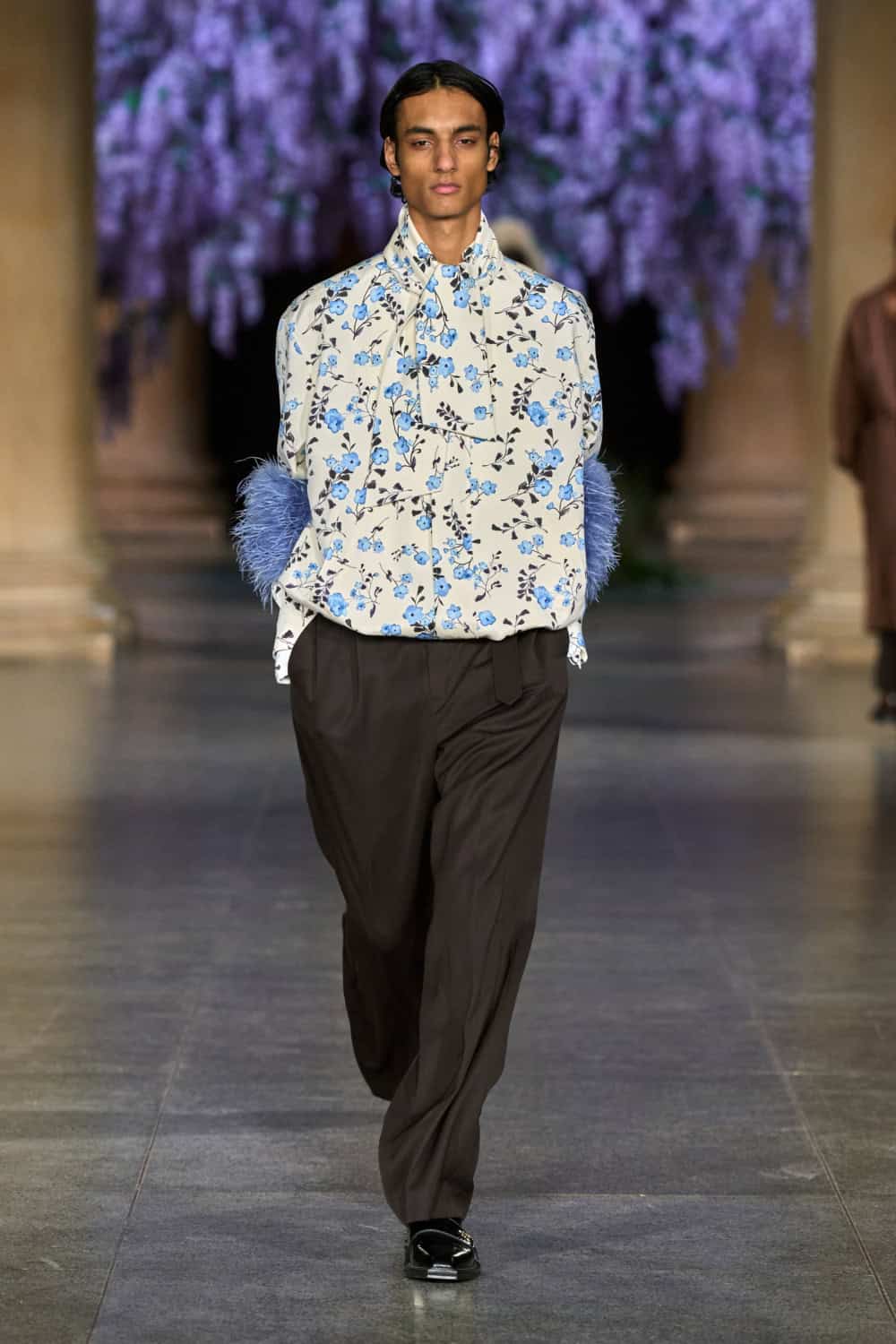 Caught at the crossroads of British sartorial tradition and far-reaching influences, Mithridate delivered a collection that felt like an exciting, flowering homecoming.