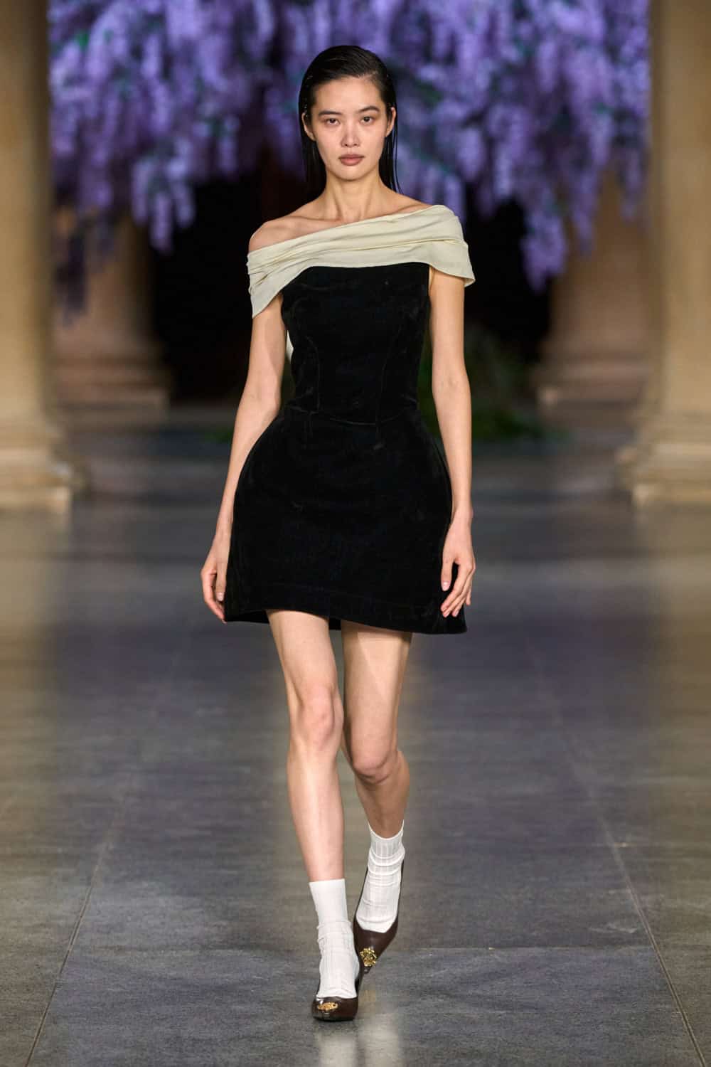 Spring arrived early this year, blooming in full force at Mithridate’s AW26 show. As guests walked into the centuries-old halls of the Tate Britain, they were welcomed by the majestic replica of a blossoming Chinese wisteria. Journeys were at the very core of Daniel Fletcher’s vision for his third runway collection at the Guangzhou-based house founded by Tina Jiang. The brand itself has been on the move, starting from its East-Asian birthplace and finding its new home on the banks of the River Thames in the London Borough district.