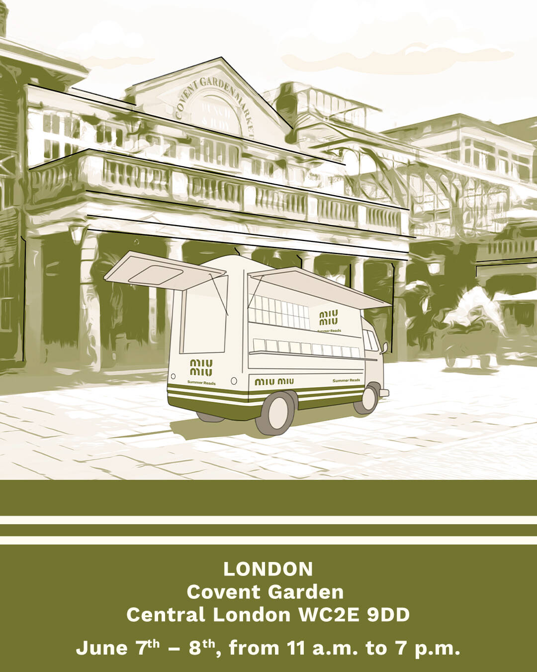 Miu Miu might be the buzziest brand in the fashion arena right now, but beyond the ballet flats and underwear-as-outerwear, the Milanese label is dipping its toes into the extraordinary world of books. Now open in Covent Garden’s Piazza (located on the side opposite the back entrance of Royal Opera House), Miu Miu’s ‘Summer Reads’ kiosk/reading patio is open for all your bookworm-ing wills. From 11am-7pm, today and tomorrow only, visitors can queue up to receive free copies of two out of three seminal texts by female writers including Alba de Céspedes’ Forbidden Notebook, Sibilla Aleramo’s A Woman and Jane Austen’s Persuasion. There are Miu Miu branded popsicles up for grabs too, making the pop-up the perfect summer pit-stop.