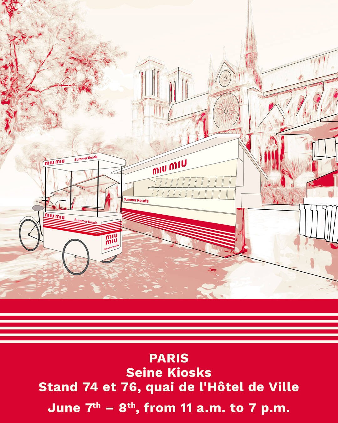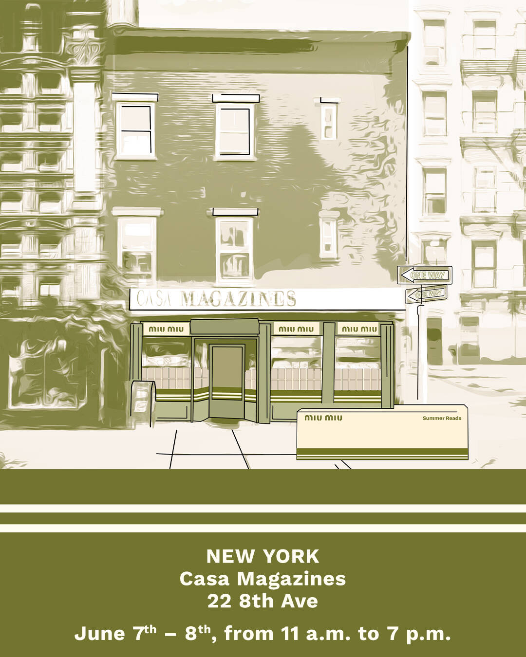 Kicking off in conjunction with the London pop-up, Miu Miu is travelling to selected cities across the world to unveil a series of special paperback-aligned initiatives, taking over and customising existing newsstands or newly constructed locations. Today and tomorrow, ‘Summer Reads’ will land in Milan, Paris, New York, Seoul, Shanghai and Hong Kong and from June 8 to 9 will stop off in Tokyo.