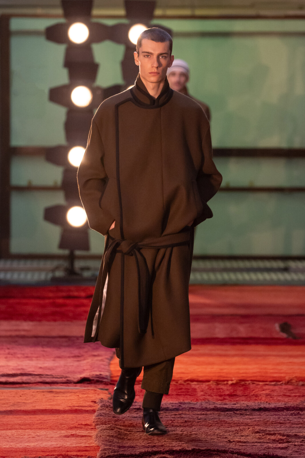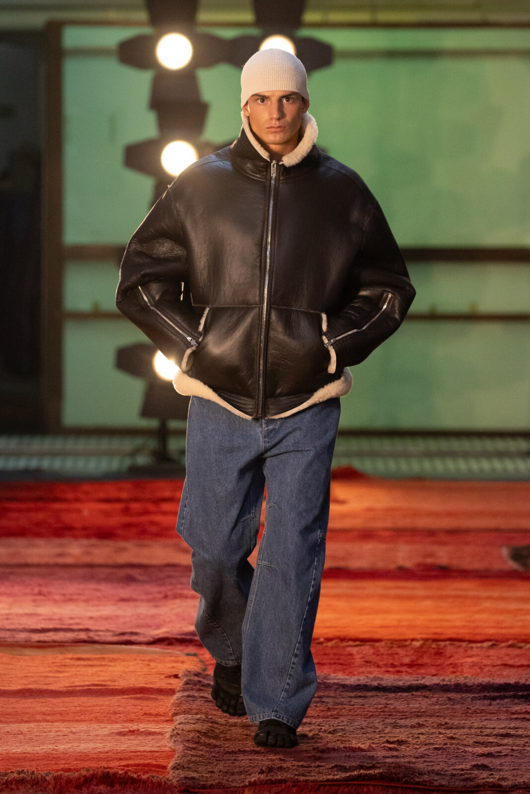 Ludovico Bruno’s Mordecai landed Milan with a clear message: this was menswear designed to move, adapt and be passed on. AW26, titled The Last Nomad, opened on a runway layered with red Berber carpets, framing a collection built around outerwear and the idea of a truly warm, flexible winter wardrobe.