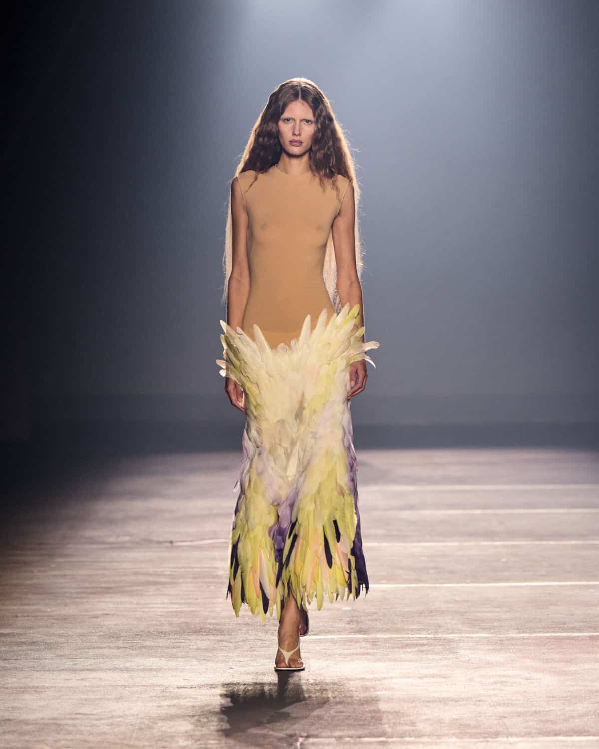 There were many Mugler-isms peppered throughout. From razor-sharp, femme fatale tailoring through to skirts and tops that sprouted with feathers, harking back to Mugler’s SS97 Birds of Paradise collection. Through Castro Freitas’ lens they felt right for the now. An excellent first chapter.