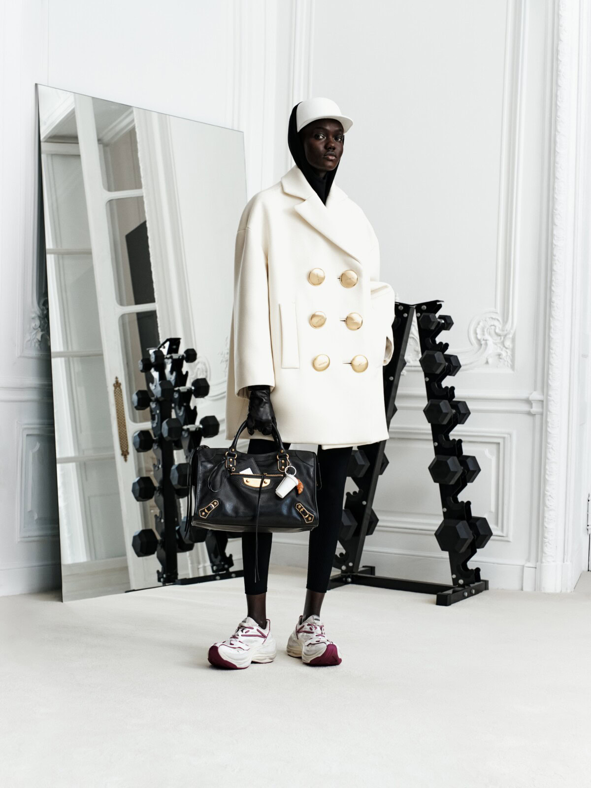 That show marked a pivot: a return to the human figure as the starting point for everything. Pre-fall 2026 extends that thinking outward, translating the runway’s ideas into moments that feel almost casually encountered. A figure pauses mid-step on a pavement slick with winter light; another leans into a stretch, muscles and fabric responding in tandem. The camera never dominates. It follows, listens, allows space for gestures to surface on their own terms. This is Balenciaga not as spectacle, but as environment.