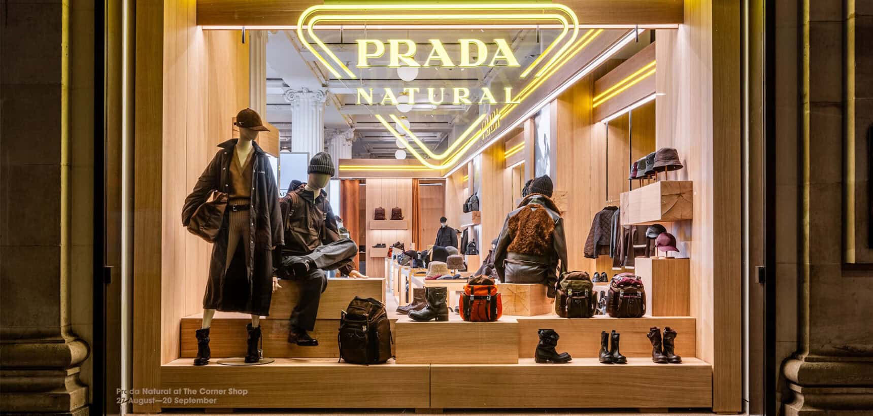 London’s retail landscape has a new guest this season. From August 27 to September 20, Prada is taking over The Selfridges Corner Shop with Prada Natural, a pop-up that feels less like a store and more like a love letter to transitional style. It’s part installation, part wardrobe reset, but entirely Prada.