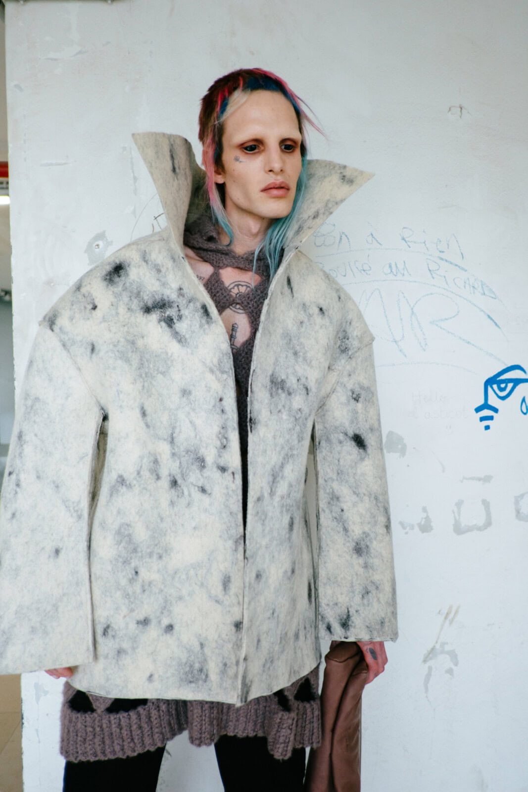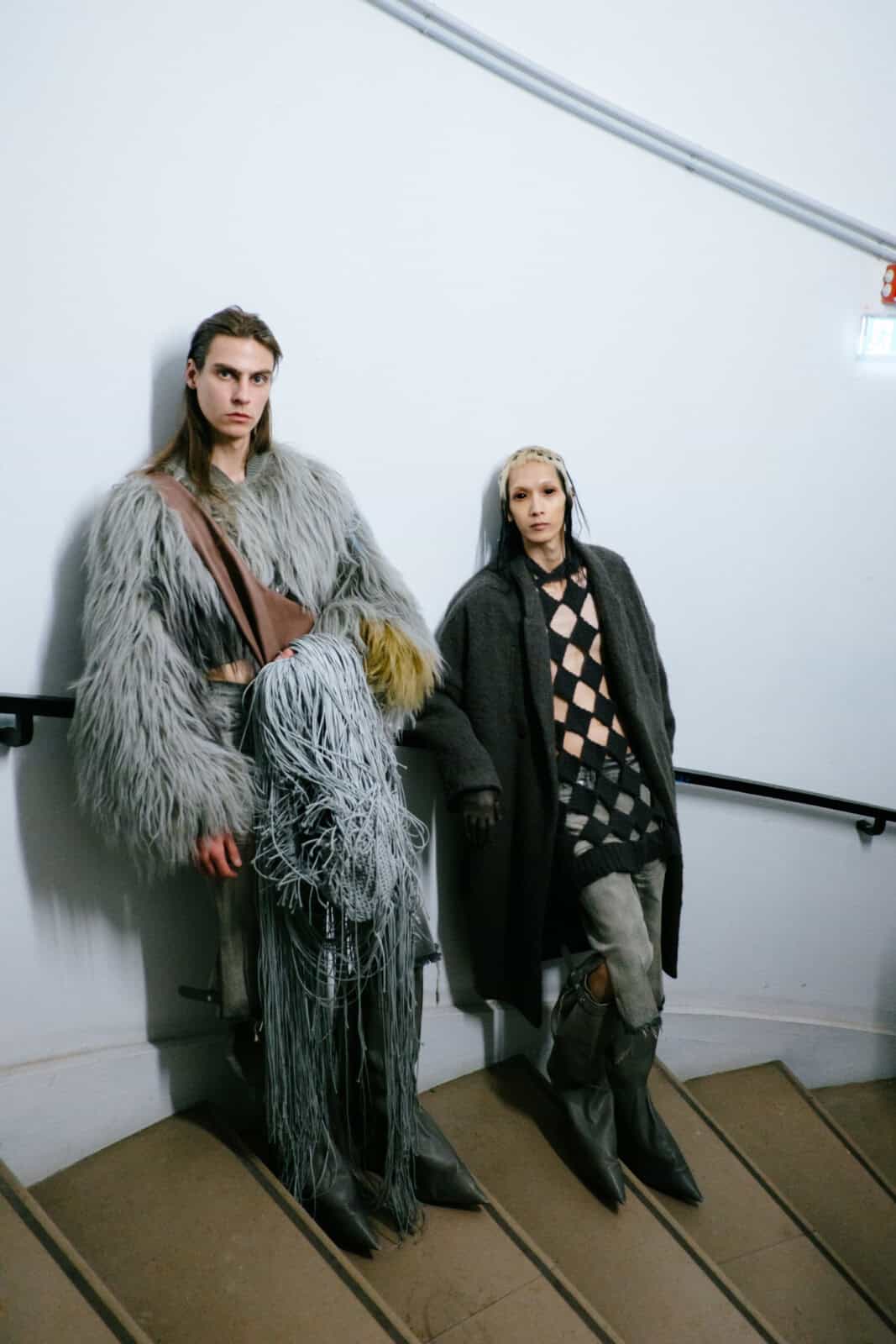 There were flashes of humour and perversity: clownish trainers, yarn-spilling cardigans resembling animal carcases and floor-length leather tassels that erased the face entirely. Colours stayed mostly black, beige and brown, softened by butter yellow and muted pink. Punkish pastel skullets, heavy face-shield sunglasses and slow, ritualised movement sealed the cultish mood. Less alien than past seasons, perhaps – but still very much creatures from another dimension.