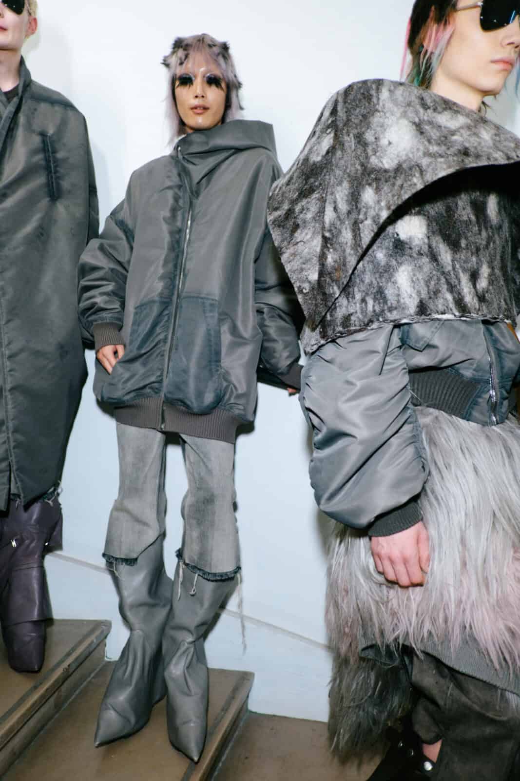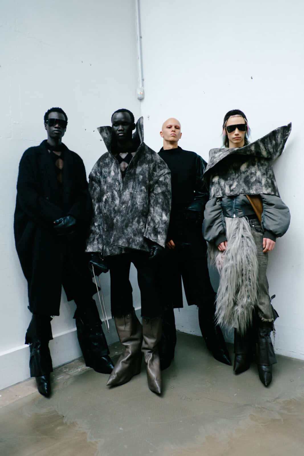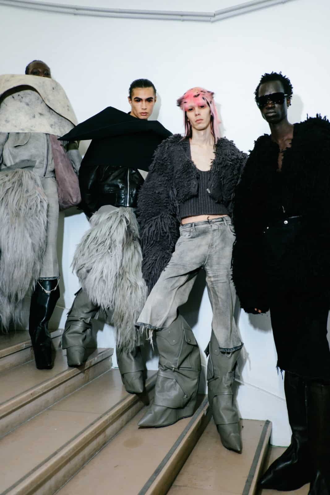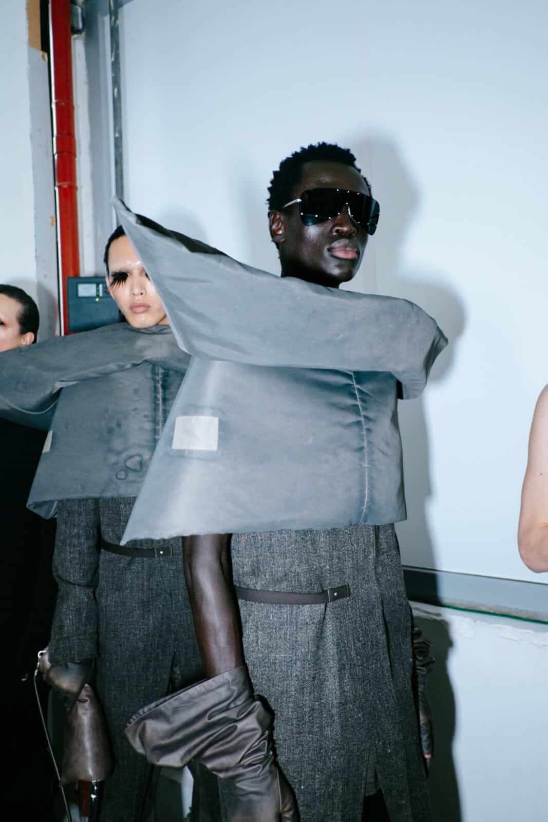 “We are the goon squad and we’re coming to town. Beep beep,” so said Rick Owens of his latest menswear show. He was quoting David Bowie’s Fashion – a song that arrived as a sneer at the ruffled, self-regarding New Romantic movement of the early ’80s. And Owens looked to that exact history lesson for AW26, unveiling a collection that was about force, scale and what happens when power-dressing turns deliberately grotesque.