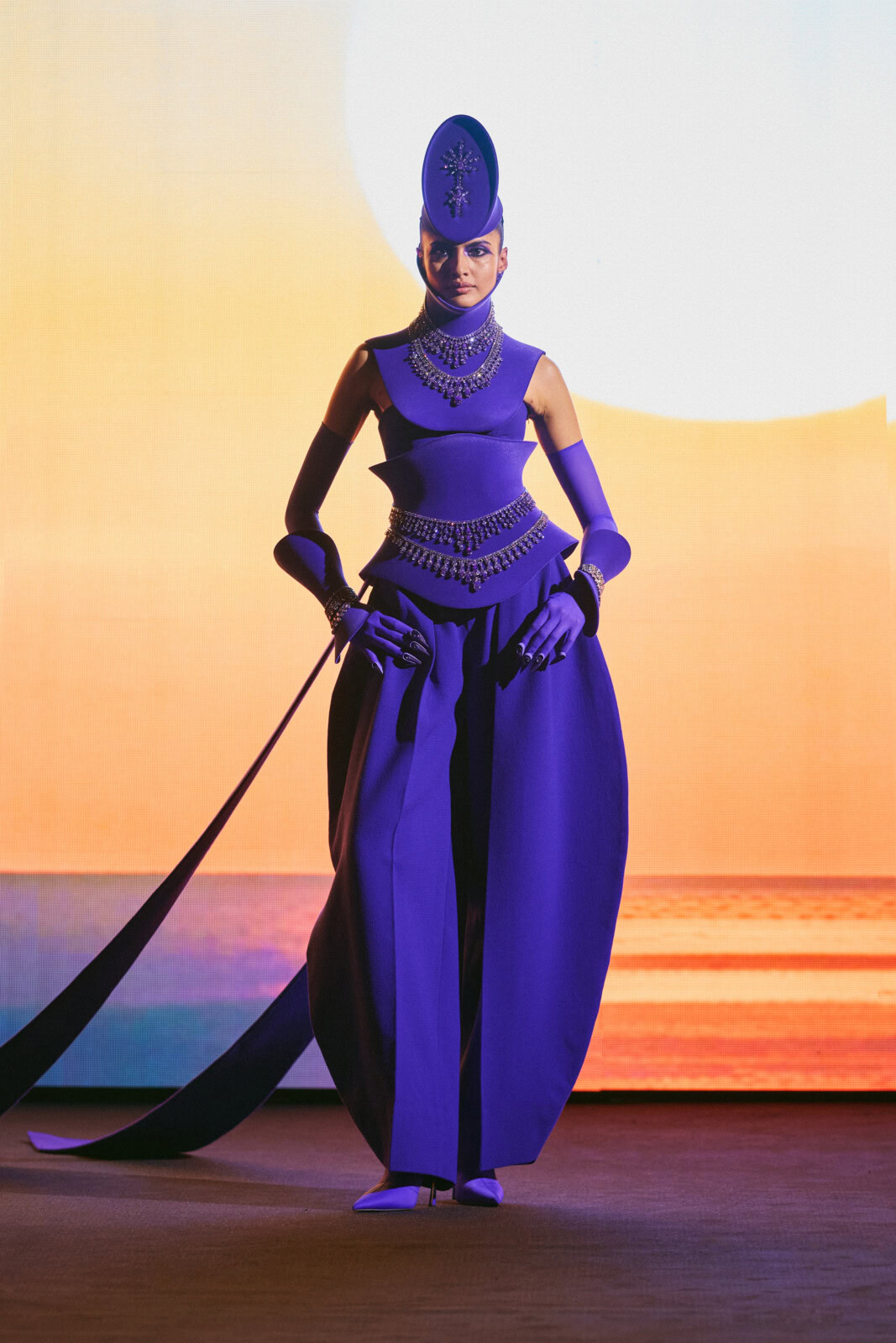 Robert Wun’s latest couture collection was a tale in three parts. Staged inside the Lido cabaret club, his statuesque models walked against giant screens that projected ferocious thunderstorms. Wun, who has quickly emerged as a highlight on couture calendar since joining the official schedule three seasons ago, is a fierce defender of fashion’s highest art form. “In the world of couture, it is often questioned whether it still reflects who we are, but I believe it still exists because it reflects how we wish to be,” wrote the designer in his show notes. “A dream, the ability to dream, and the will to keep dreaming. They all exist because of a creator’s courage and their purest intention to create.”