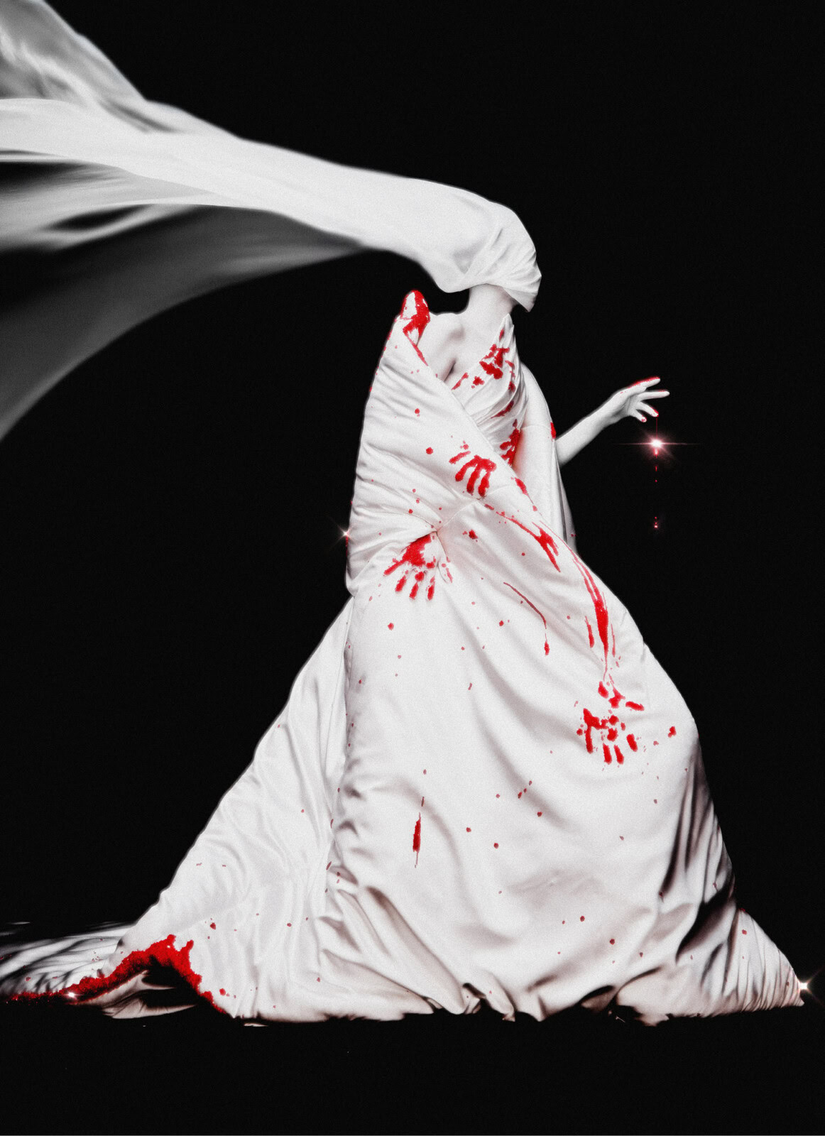 He thinks cinematically, explaining that his AW25 couture show, Becoming, aimed to “translate the ritual of dressing into a storyline”. He gave each look a narrative. So, what’s the story of the opening outfit with its bloody hand prints picked out in red crystals? “She went out last night and came back to her hotel. She woke up, super hungover, and has got all these mysterious stains on her duvet. She has no idea where they’re from. Is it ketchup? Blood? No one knows. But she still needs to get ready, because the big night is tonight, so she gets up gracefully. Hair still perfect, but she’s got all this on her duvet. I wanted to do untold stories about waking up, getting changed and trying on the new clothes you’re going to wear tonight.” As for those strange mannequin limbs, the idea came, he says, from his fascination with the language of posing and the gestures made in front of a mirror before you go out.