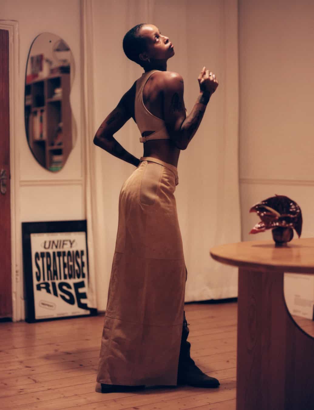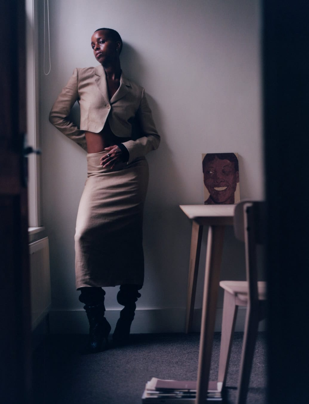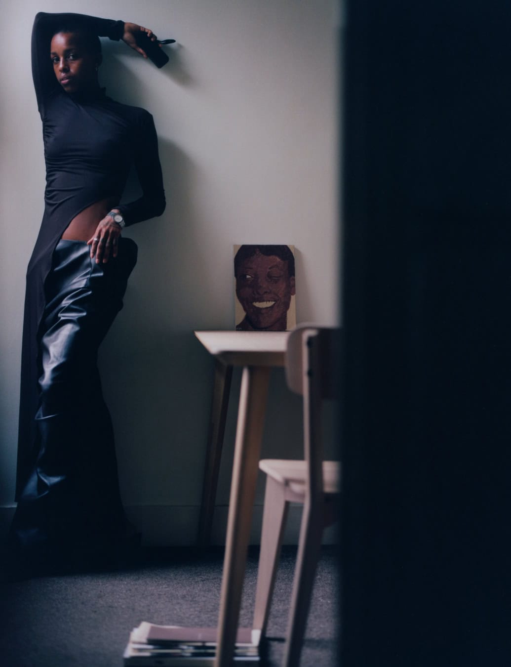 These aspirations of infiltrating people’s day-to-day lives with her work might not be out of reach, as McKenzie has gone from strength to strength these past few years. With rising acclaim, however, has come a slight unease and a desire to reposition how much people know about her personal life. Whereas in her first home, which she bought in 2021, she gave various photoshoots and interviews about the interior design choices, she has since moved and, for her self-shot 10 cover, is careful about what she reveals. “I guess there’s a level of privacy that I’m seeking at this point in my life,” she says. “So when I was going to take these images for this story, I was thinking, ‘Alright, how am I going to do this in a way that still allows me to retain my privacy and sense of self while still capturing myself and my own home?’ It was a real challenge.” The resulting photos make use of light and dark, the corners of rooms, and find McKenzie utilising props that signal specific parts of herself: magazines, a Kofi Perry painting her partner won for her in the annual sports day sack race, copies of Selasi Stories. “I was more thoughtful and intentional about myself in my space and how malleable it can be for what I needed it to be like. I needed it to be my studio. So it became that, and I think that is more representative of where I am in my life at this time.”