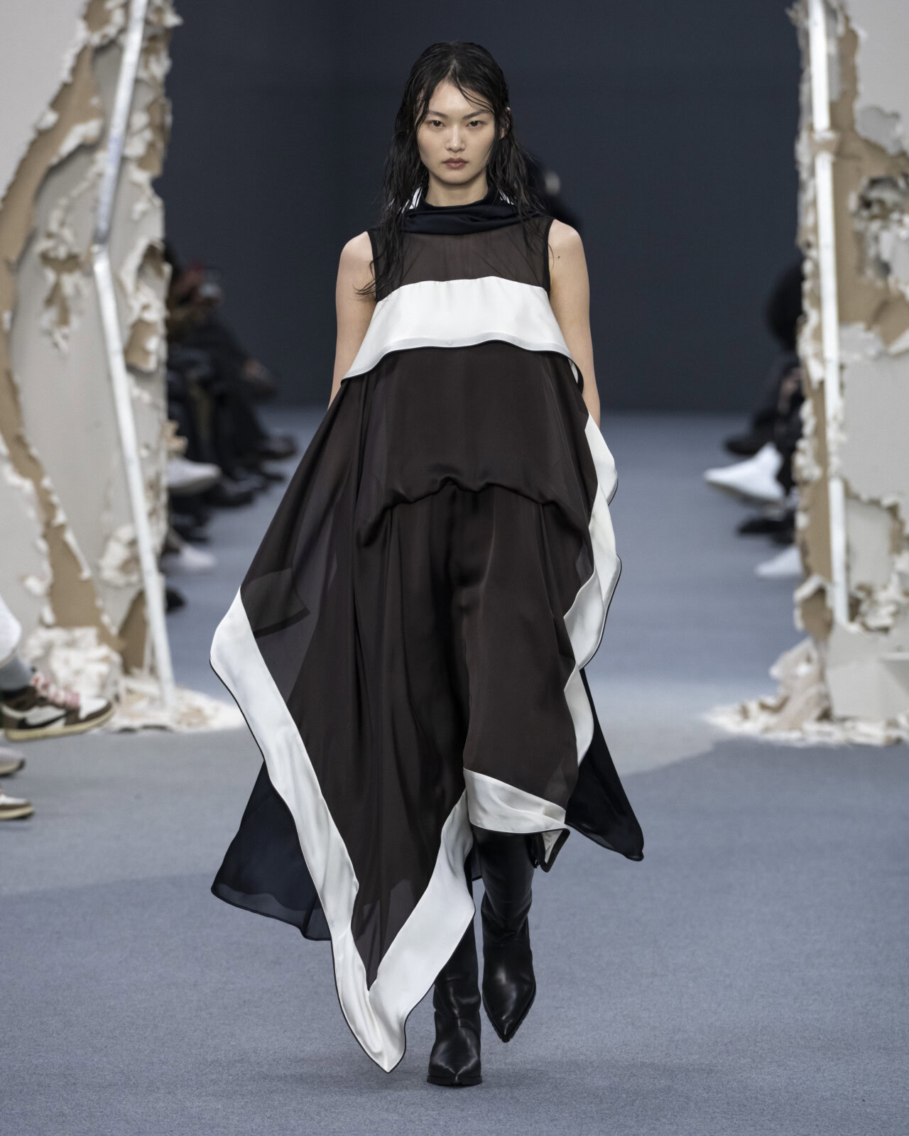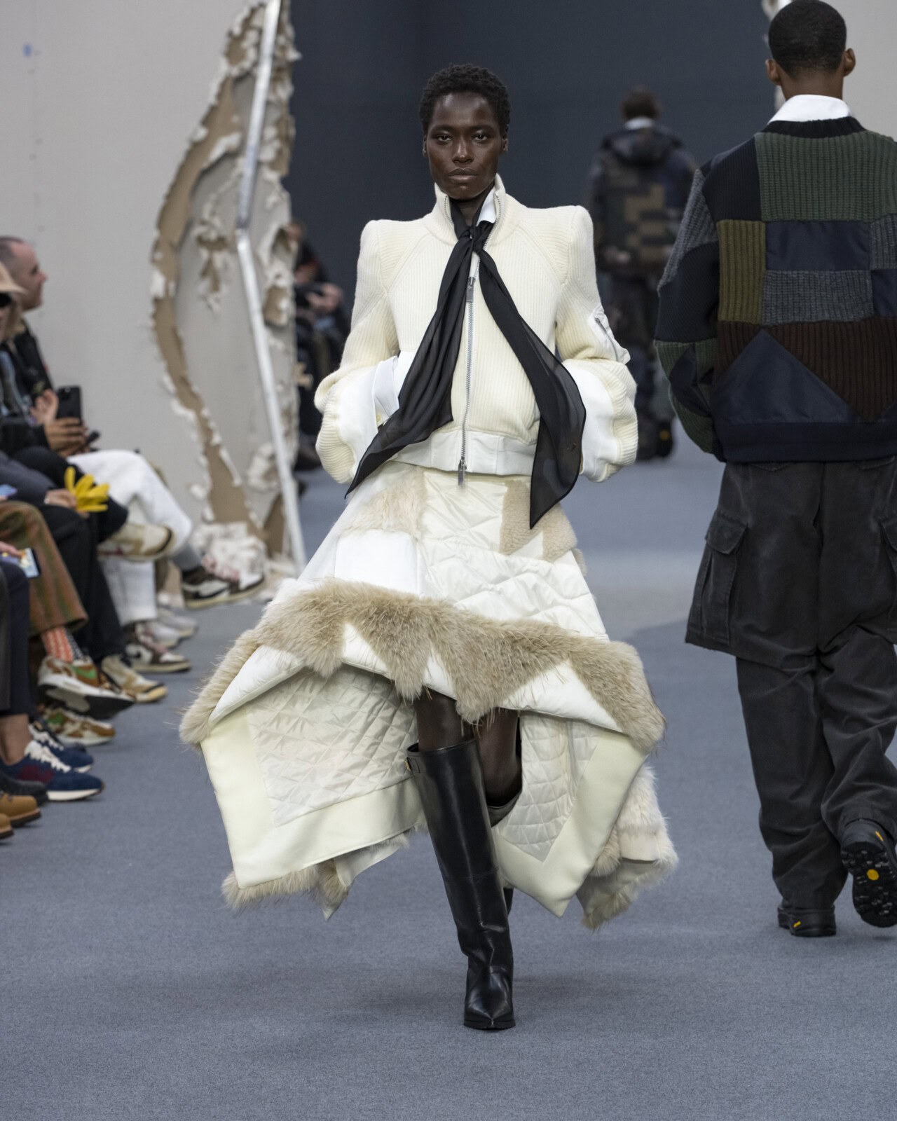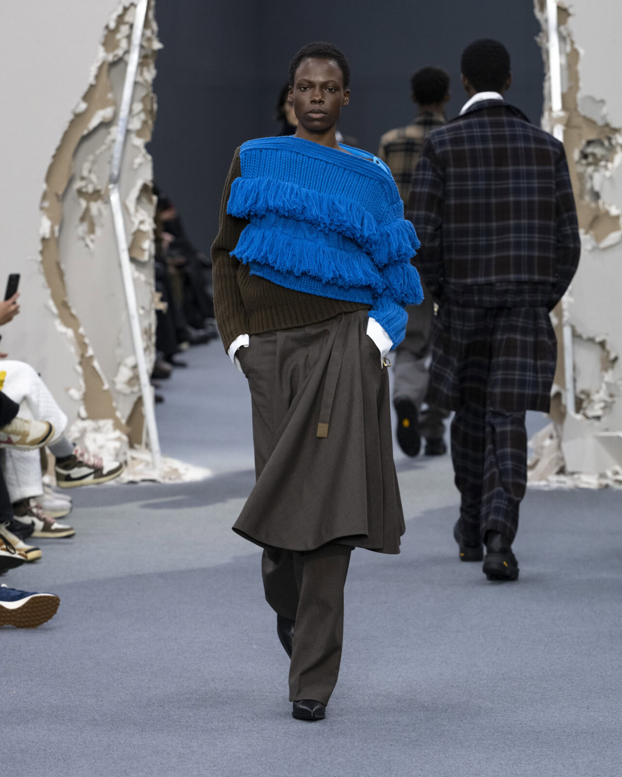 Wouldn’t it be lovely if every Sunday could kickstart with a Sacai show? Chitose Abe’s pattern-cutting wizardry never fails to amaze. Yet, her hybrid wonders this time around packed an extra punch. These were clothes you wanted to snatch straight off the catwalk and plonk in your own wardrobe, touring through a variety of garment categories with total ease and experimental bliss.