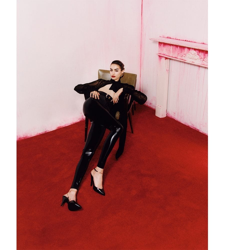 The house of Saint Laurent has always thrilled with sexual frisson. In the sixties and seventies, its founder Yves Saint Laurent, dressed the sexual revolution – putting women in the masculine Le Smoking and freeing the nipple in transparent finery. Anthony Vaccarello continues that tradition, designing clothes that take us into the realm of the senses.