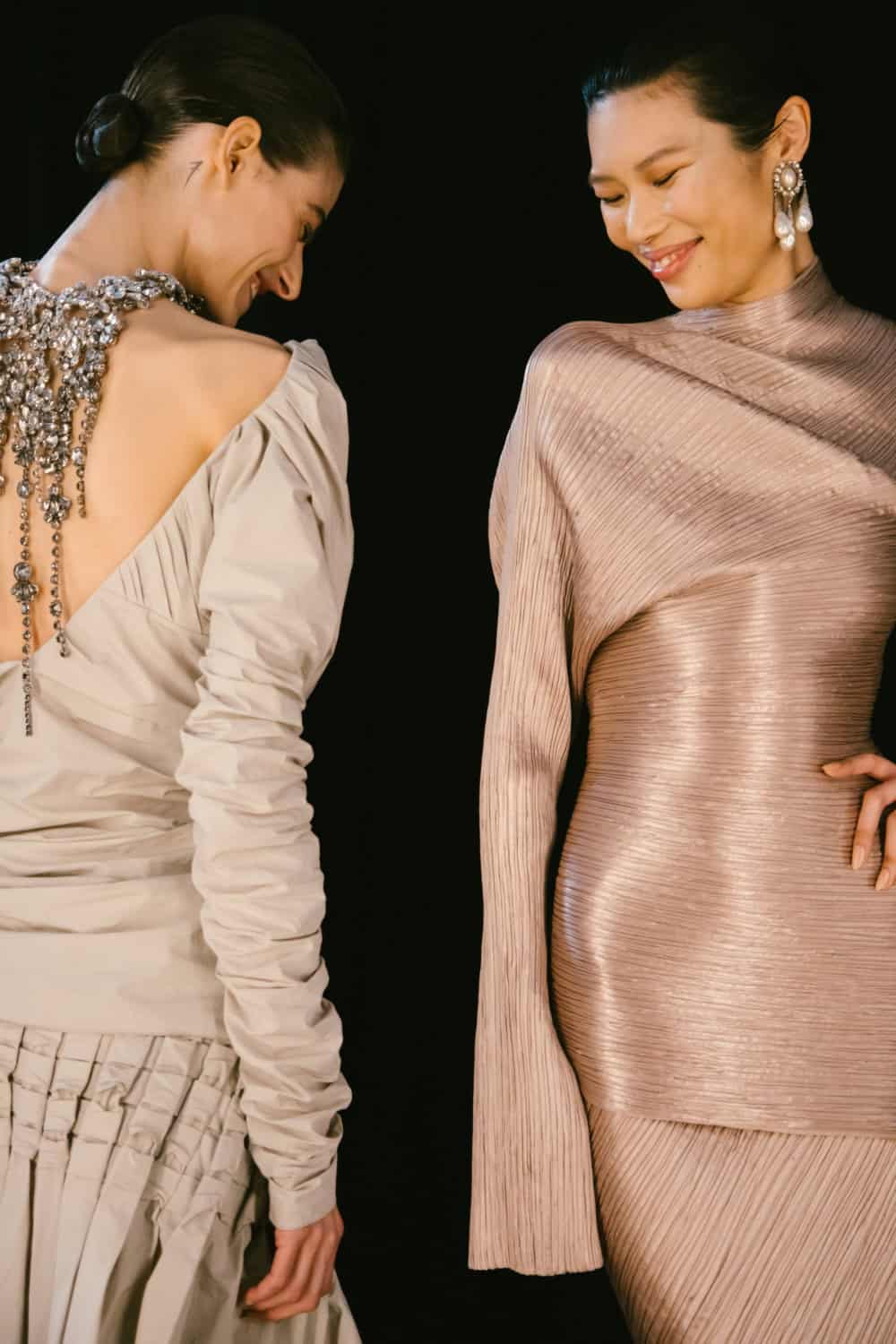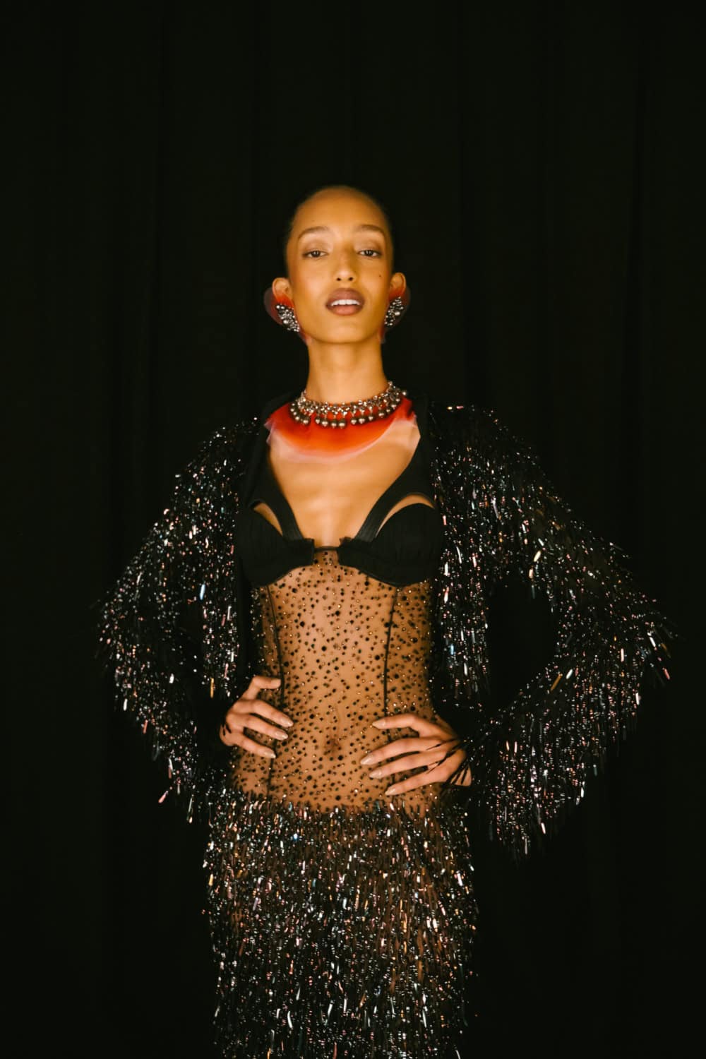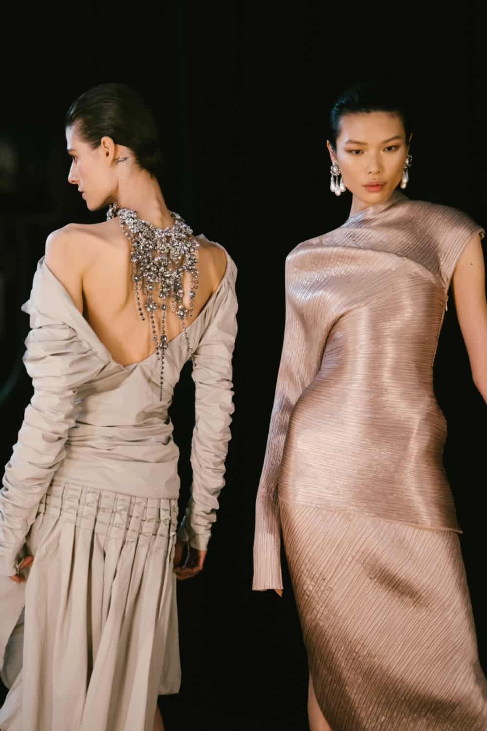 It ended with sparkle – sequinned gowns, tassel-like paillettes and glossy pleated dresses catching every flash of light as they moved down the runway. This was Schiaparelli glamour turned all the way up.