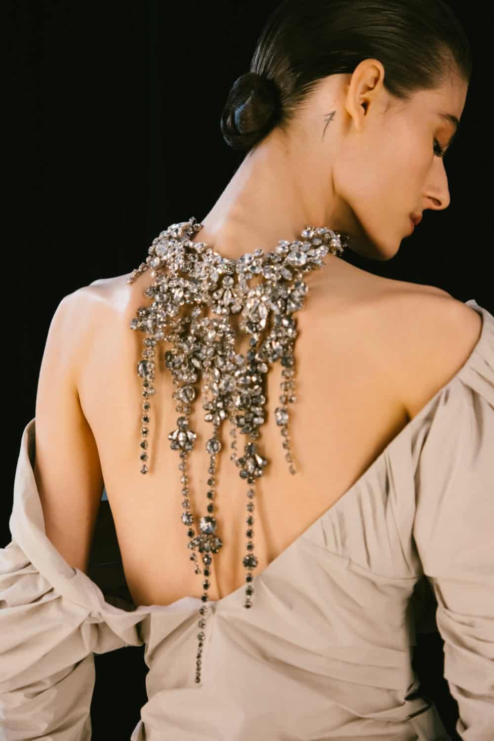 Daniel Roseberry called his AW26 Schiaparelli collection The Sphinx, a title that nodded to the house’s enduring fascination with enigma and contradiction. In his show notes, he also pointed to the imminent opening of the V&A’s Schiaparelli: Fashion Becomes Art exhibition (opening March 28), a retrospective of Elsa Schiaparelli that explores how she questioned fashion as a medium – what a dress is supposed to be, and what it might become.