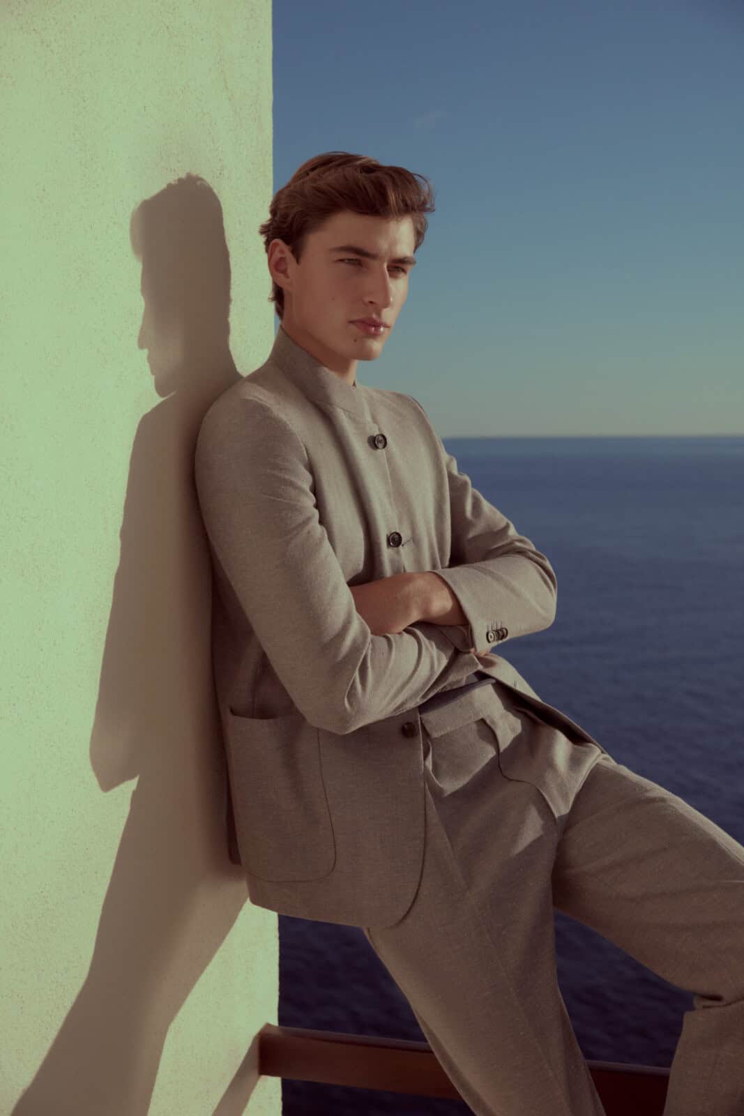 Caruso’s SS26 menswear campaign delivers sun-kissed visuals backdropped by the expanse of the sea. Shot by Karen Collins and modelled by Matej Diblik, the quietly opulent campaign is set within a sun-drenched coastal apartment where serenity meets the sculpted elegance of suits.