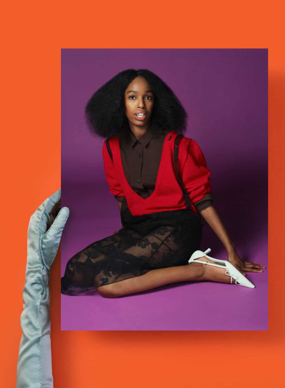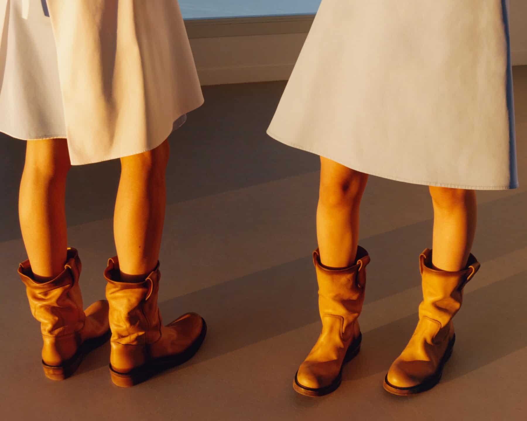 Teamed with photographer Oliver Hadlee Pearch, American artist Anne Collier has produced a portfolio of images that re-envisions a fashion campaign fit for the digital age. In this instance, with the assistance of a vivid tangerine background, the imagery is treated as a physical material object and re-photographed in the awaiting gloved arms of observers and onlookers whose off-camera perceptions mirror our own as consumers. With roomy layers and a deliciously multifaceted selection of textiles, hemlines and arm candy relayed in all their glory, Prada’s SS26 offering commands curiosity and admiration in equal measure. EO’G