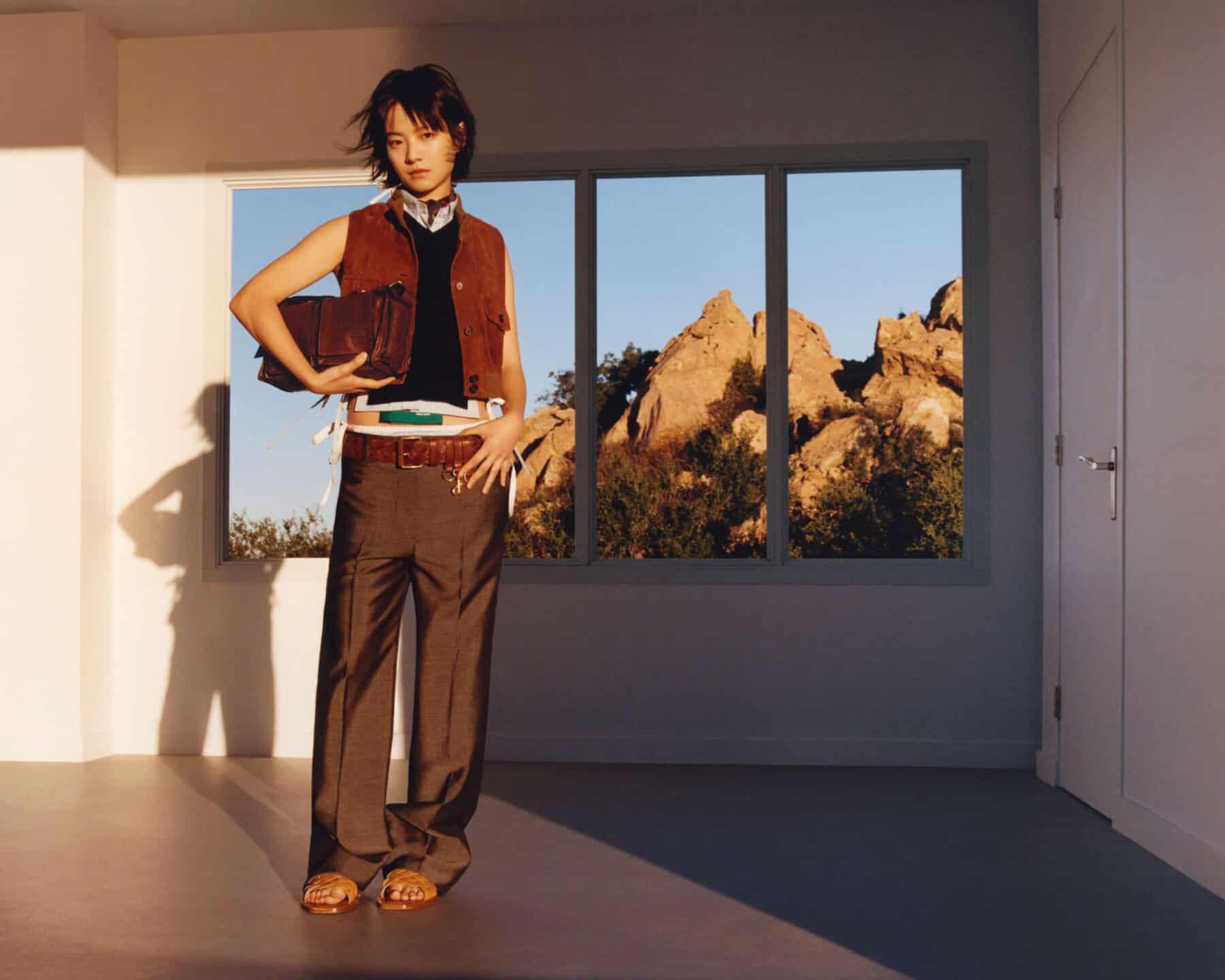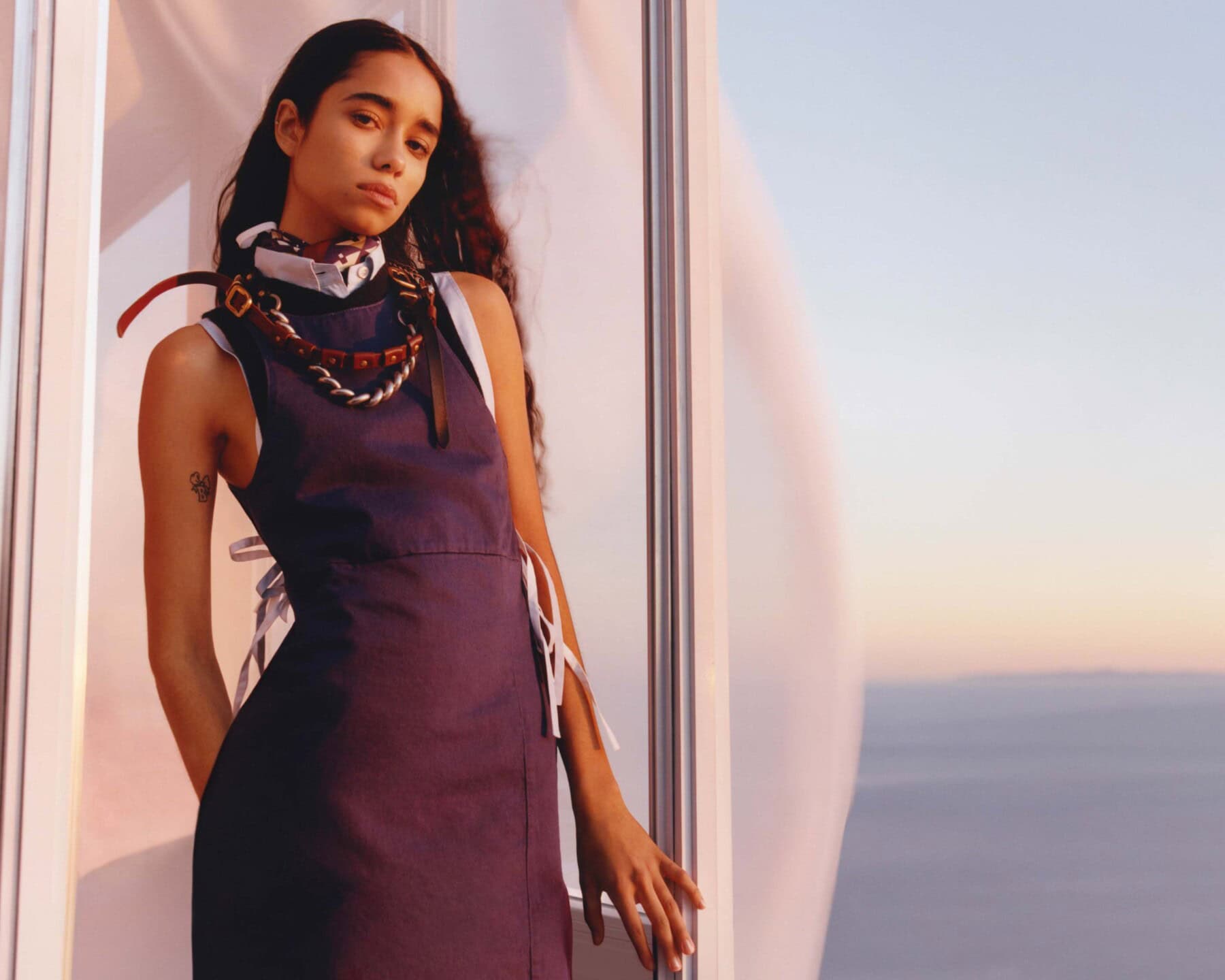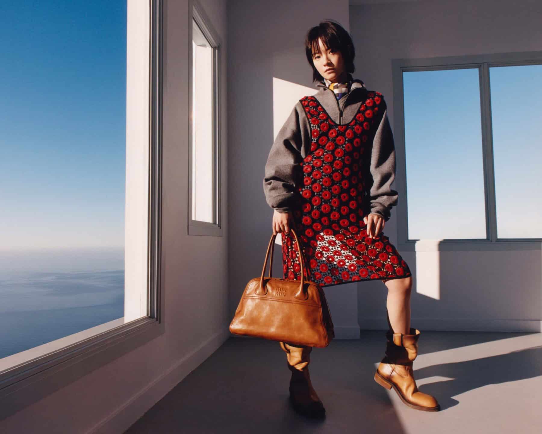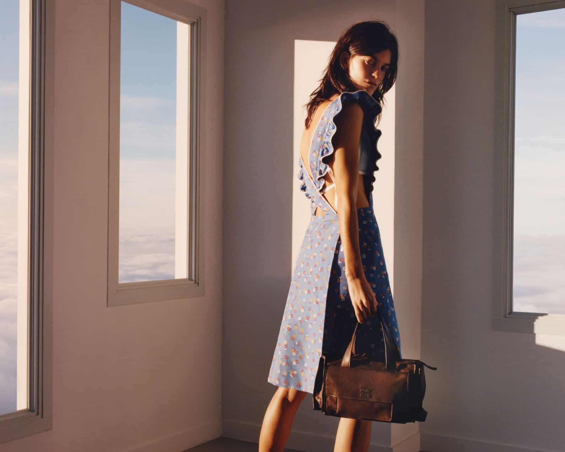 Miu Miu is on top of the world – literally. Captured through the poetic lens of British photographer Jamie Hawkesworth, the house’s SS26 campaign, On Cloud Nine, comes to life in a light-imbued room floating above the treetops. As the sun rises and descends again in the background, the multi-disciplinary cast of the campaign lingers by the windows in looks at once industrial and ultra-feminine. Actress, director and screenwriter Suzanne Lindon’s shadow stretches out on the brightly lit walls as she holds the Utilitaire bag, wearing one of the collection’s signature apron dresses. Meanwhile singer and songwriter Olivia Rodrigo is captured candidly yawning for the camera while rocking a car coat over a crystal-encrusted frock. Alongside others, this campaign paints a romantic picture of the Miu Miu woman in all her multifaceted glory. Cecilia Nuvola Bechini