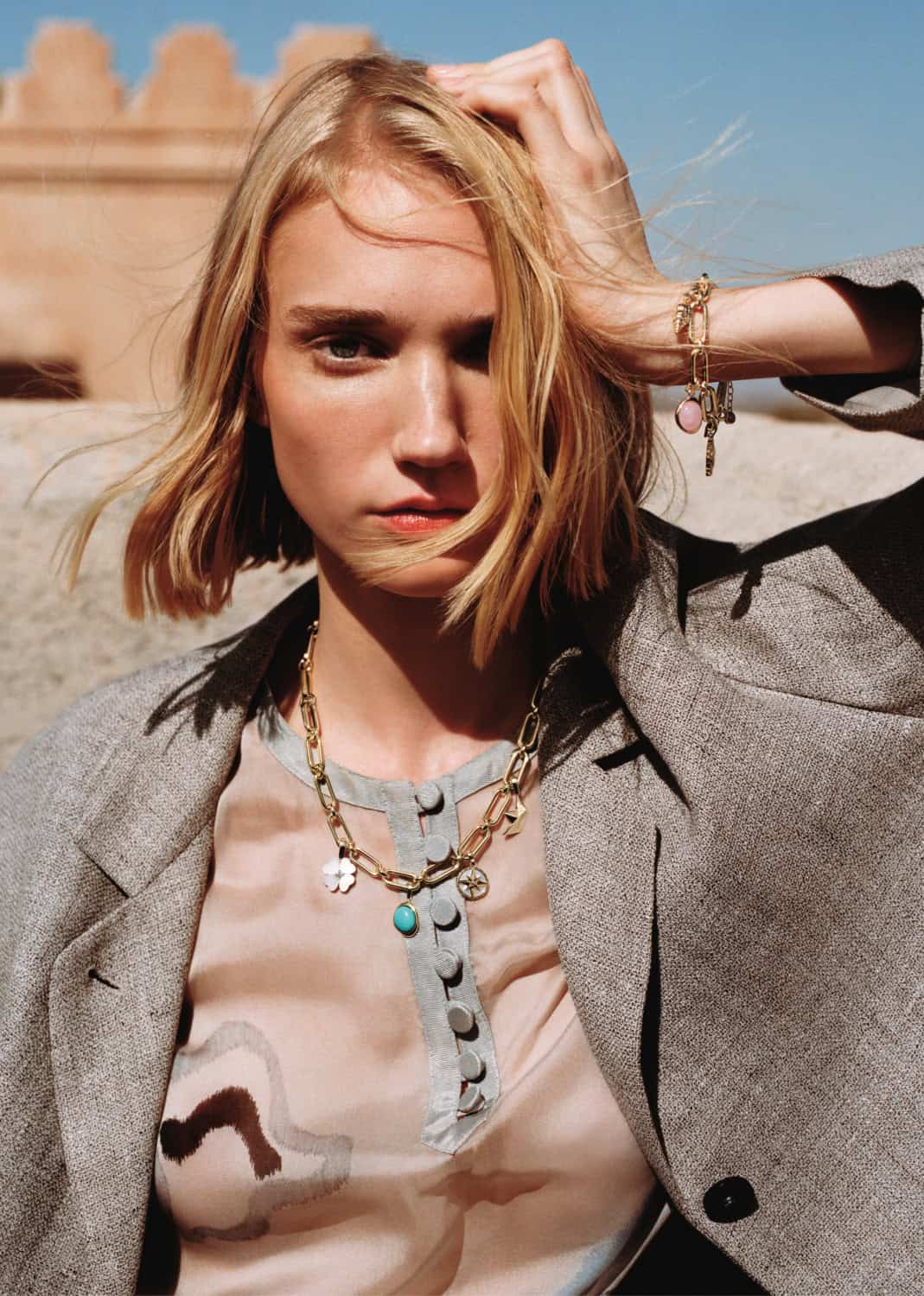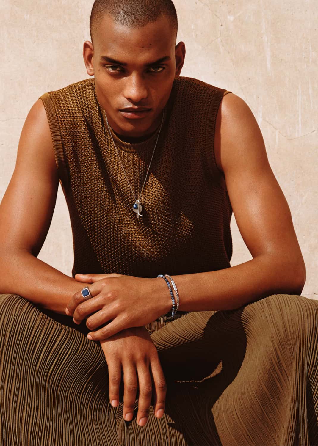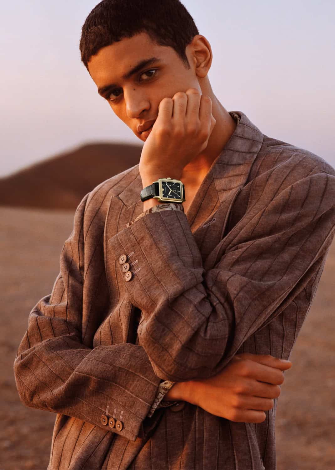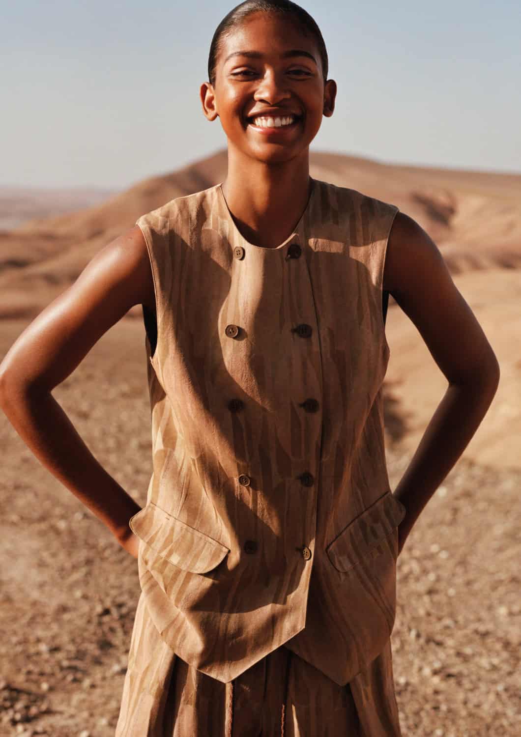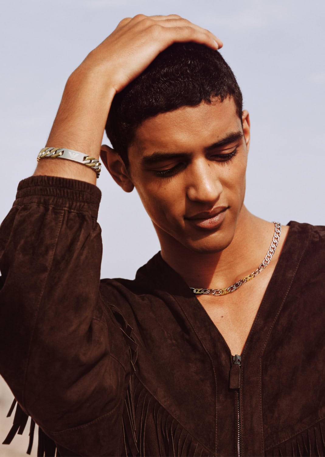 Shot by Alasdair McLellan, Emporio Armani’s SS26 campaign unfolds beneath the sun-bleached tones of desert landscapes and Moroccan-inspired architecture. Warm light washes over terracotta walls, carved archways and open courtyards, casting long shadows that shift throughout the day.