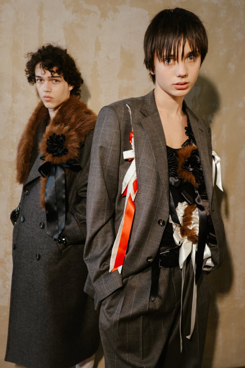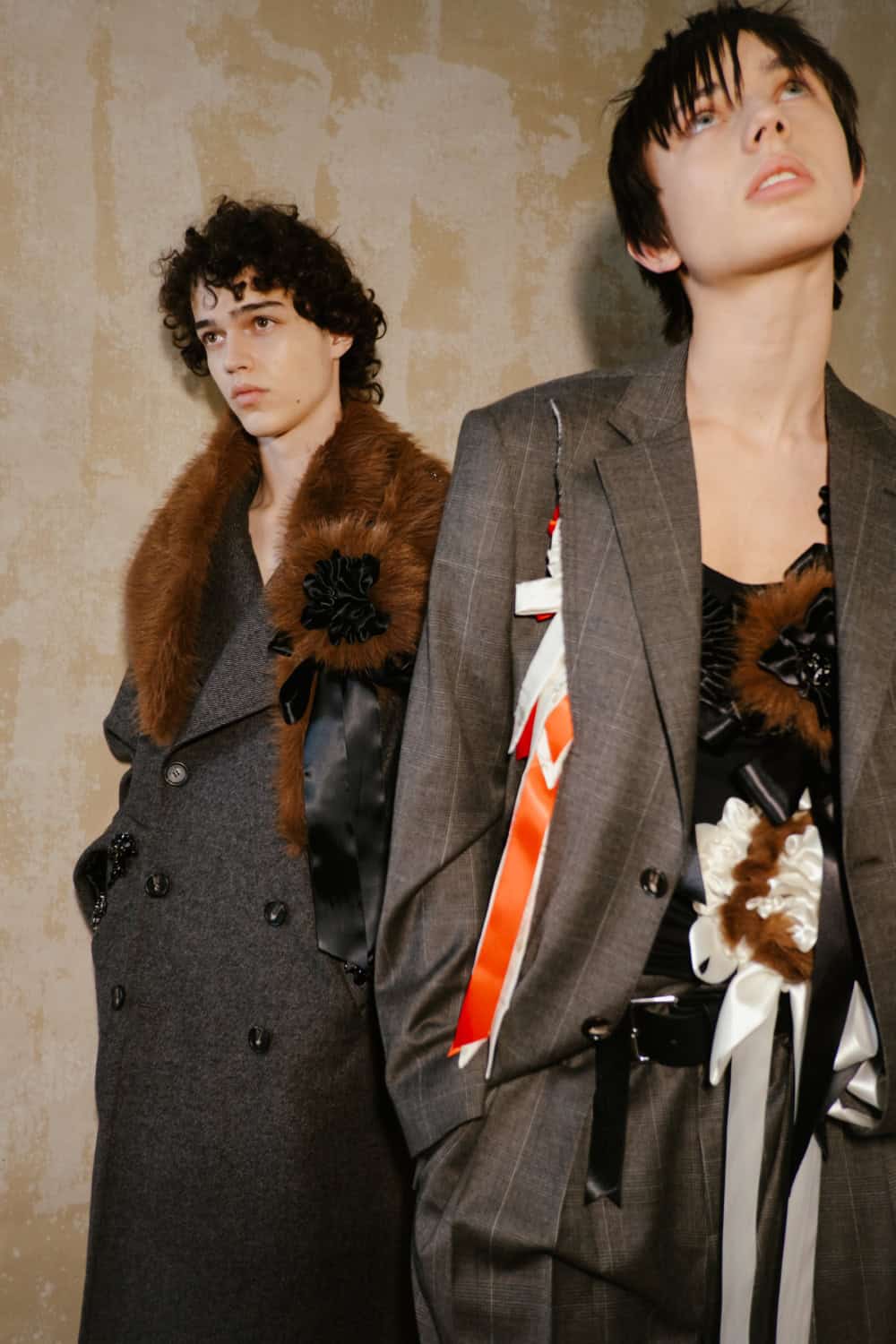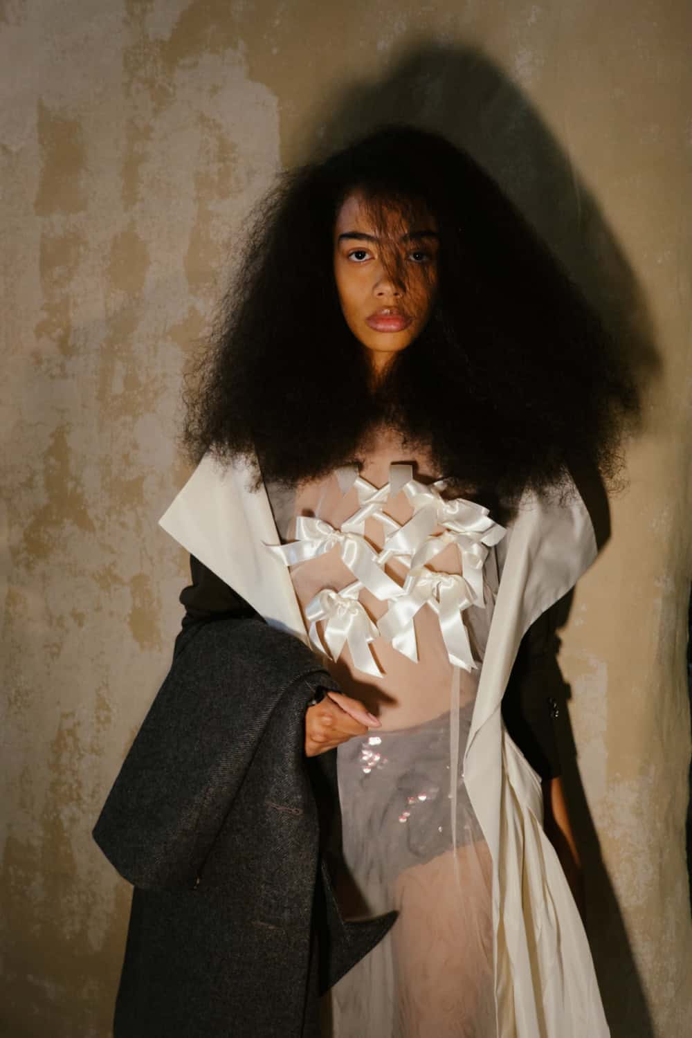 Showing her men’s, women’s and Adidas collection together in a the derelict theatre space at Alexandra Palace, the designer wanted to layer her feminine aesthetic with, “Rugged, feral elements to cut through the beauty.”