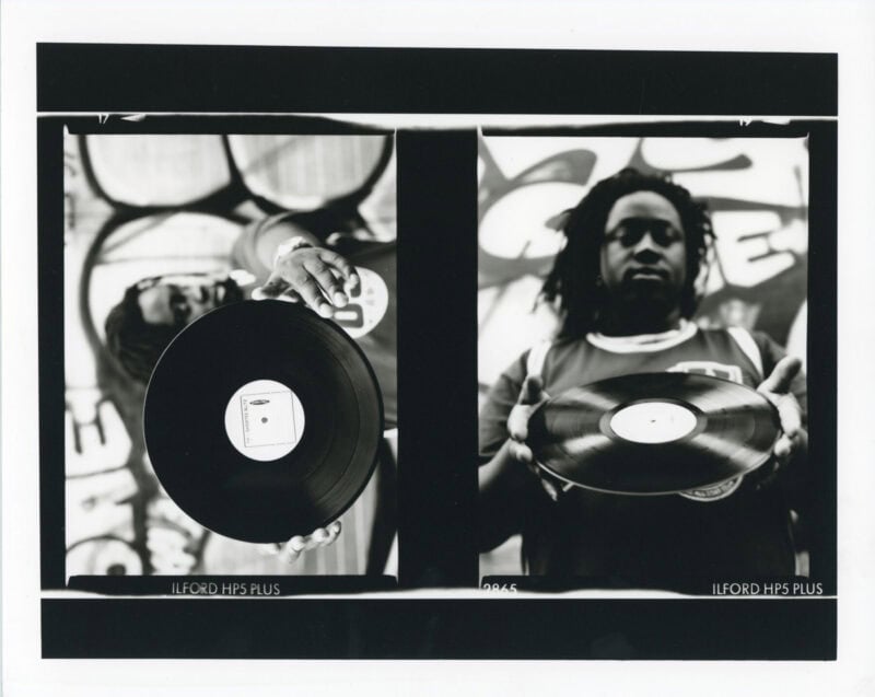 After delving into Baptiste’s portraits of artists across the hip-hop and R&B scenes in the room that follows, the exhibition culminates in a room dedicated to Revolutions @ 33 1/3 rpm, a series documenting London’s hip-hop DJ scene in the late ‘90s. Presented as diptychs, the portraits document key figures in the scene, including MK, Semtex and Shortee Blitz. “I bought my first record when I was about 10 years old,” says Baptiste, whose history with record stores, specifically Deal Real, a Soho watering hole for UK hip-hop fans, led her to document the scene’s ebbs and flows. “I didn’t start photographing music artists professionally until much later, but as a teenager I would buy 12-inch records and get them signed,” says Baptiste. “When I’d go to signings, I’d bring along my 35mm camera and snap pictures. I took photographs of Nick Kamen at HMV, and the likes of Run-DMC and Five Star. Funnily enough, a few years back, I photographed Denise from Five Star, and told her how I’d taken a photograph of her as a teen at a signing.” This section also features a series of mixes created by each DJ, which feature music produced between 1989 and 2003, as a means of further immersing visitors in Baptiste’s world.