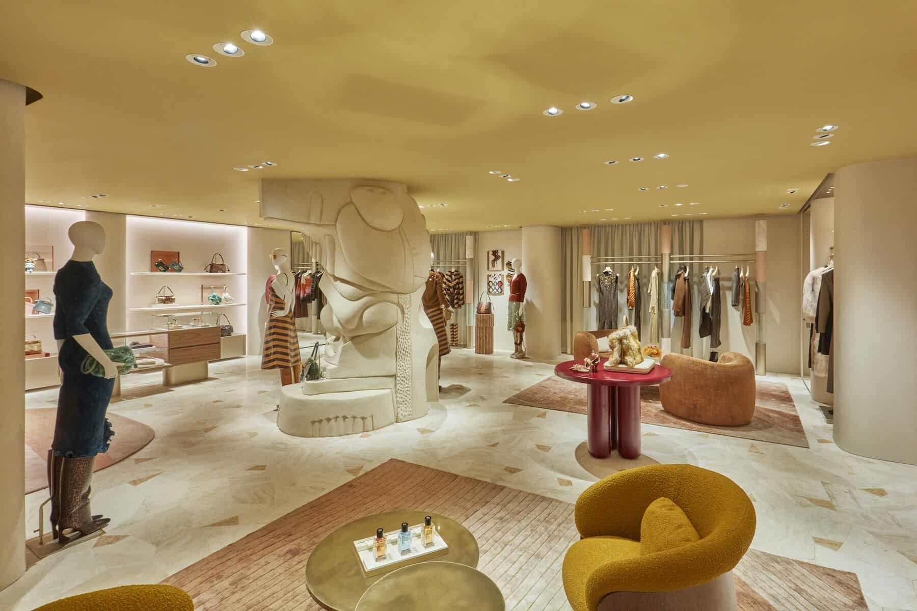 Fendi has taken up more room in Harrods – because, frankly, it deserves it. The newly expanded Women’s Superbrands boutique is Roman grandeur reimagined: Palladiana flooring in Travertino Ascoli and Giallo Valencia marble, Calce Romana walls, columnar details and a totemic ceramic sculpture by Olivia Cognet all across an additional 50 square metres of shopping space and three rooms total. It’s a love letter to craft, architecture and a little mid-century swagger. EP