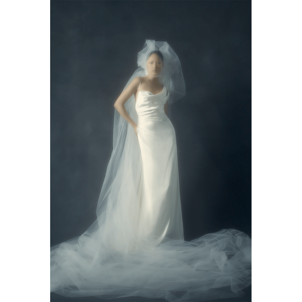 The SS22 bespoke bridal collection by Andreas Kronthaler for Vivienne Westwood sees the designer toy with proportion. The collection takes 1950s silhouettes and pairs them with Marilyn Monroe-inspired hourglass shapes, mixing lace, silk moiré and beaded tulle throughout. Always putting the needs of the planet first, Dame Viv is now offering a new service where the brand’s couture team will transform bridal gowns after the wedding so newlyweds can wear their dress over and over again. PT