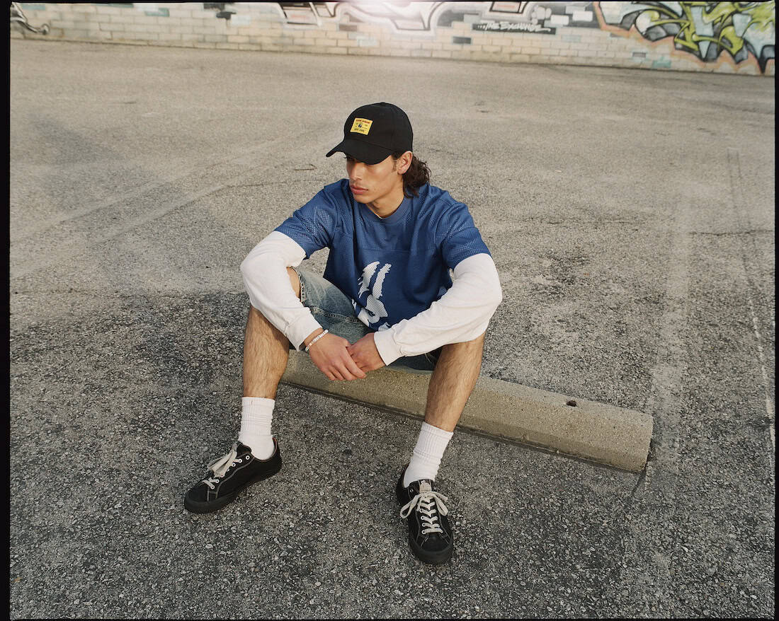This denim has us laughing all the way to the store. For spring 2026, Guess Jeans is tapping cult Harajuku label Hysteric Glamour in a new collaboration bridging the rebellious creative undergrounds of California and Tokyo. Revealed in a campaign shot on-location at a Los Angeles motel, the collection brings Guess Jeans’ classic silhouettes together with daring Hysteric Glamour graphics to encapsulate that SoCal surf and skate heritage. The result is a nostalgic Spring wardrobe with a soul defined by both brands’ decades-long entanglements with youth culture. This shines in the detailing, as labels are strewn across garments to embed a tactility whilst denim is embossed and treated by lasers before being paired with retro Venice Beach stripes. Dropping April 4, we can’t wait to pull up to the skate park in these. JH