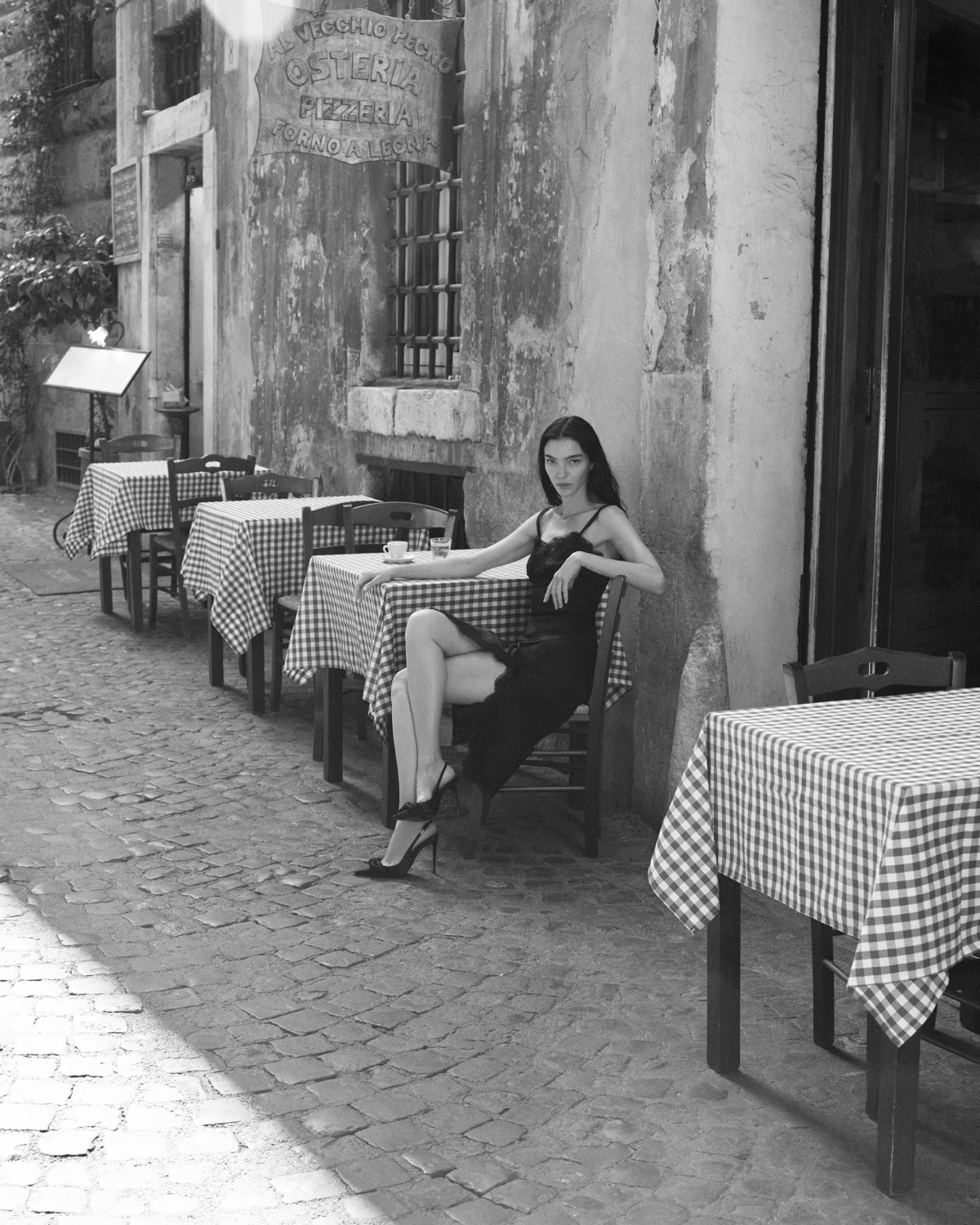 Coming in hot is D&G’s latest DNA campaign, featuring Italian sweetheart Mariacarla Boscono. Set in Rome, Boscono is captured in part-romantic-part-sultry shots through a black and white lens. The assisting video, adding to the campaign’s Italian summertime nostalgia vibes, shows the model-cum-actress sat outside an old pizzeria, strolling through the cobbled streets of Rome, ponderingly laying in bed and sharing a kiss with a mystery man. Photographer Karim Sadli and stylist Emmanuelle Alt work together harmoniously to play with shadows in the film, with Boscono wearing all black in a visibly sunny afternoon – she dons a D&G sheer knitted dress, another bodycon vintage-inspired dress, a cropped blazer with suspenders and classic stiletto heels. These are topped off with classic stiletto heels and a smooth leather satchel bag. Summertime elegance never looked so good. LE