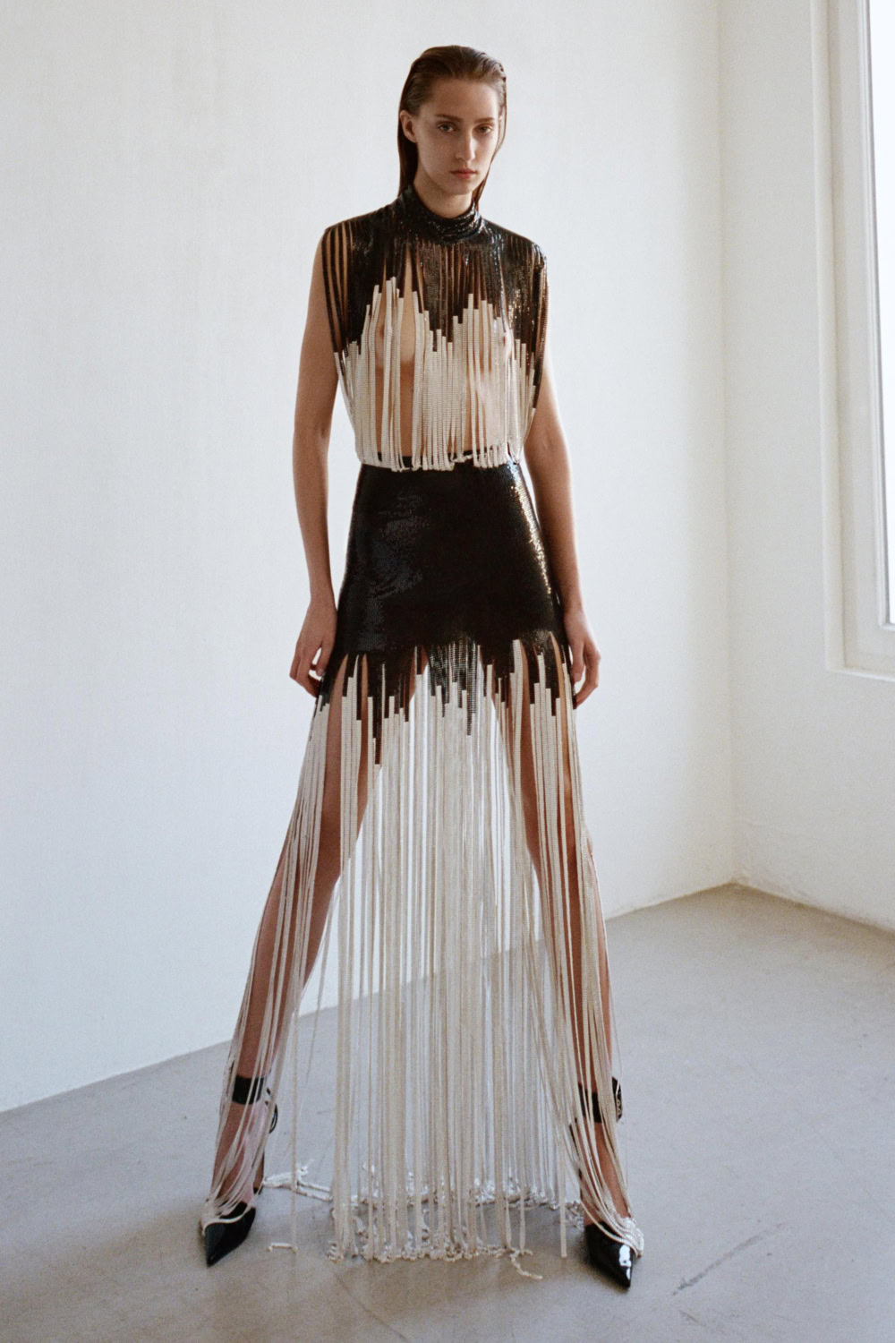 The assisting images were shot by Italian duo Nicola and Manuel, the photographs replicating the minimalistic sequinned sexuality underscoring the collection. Lillie Elston
