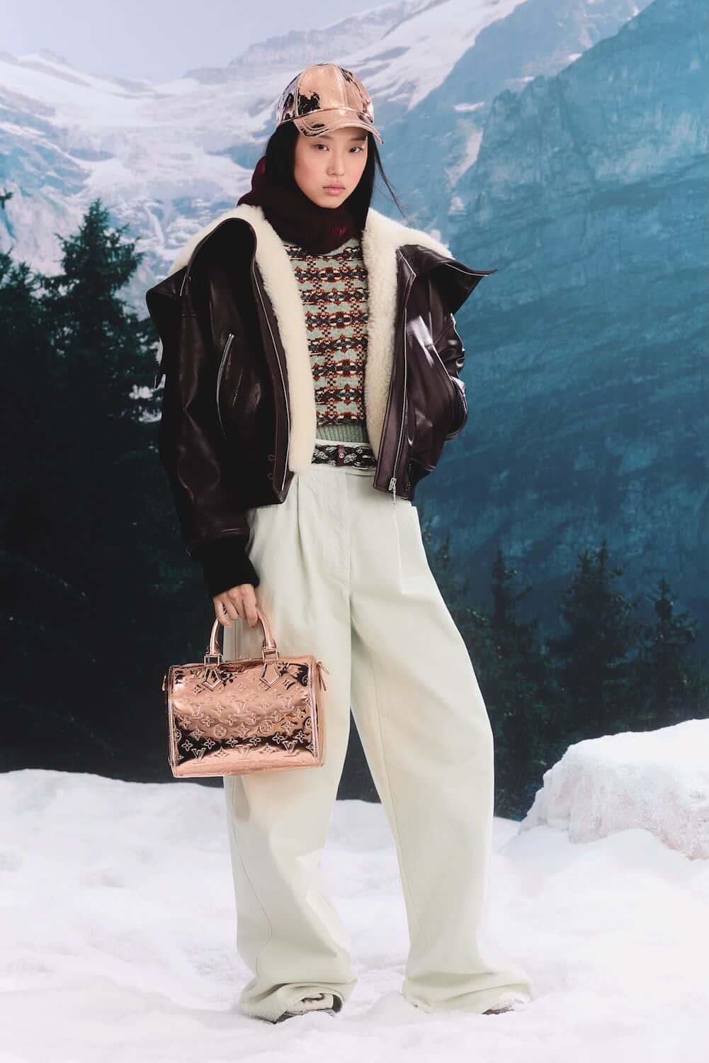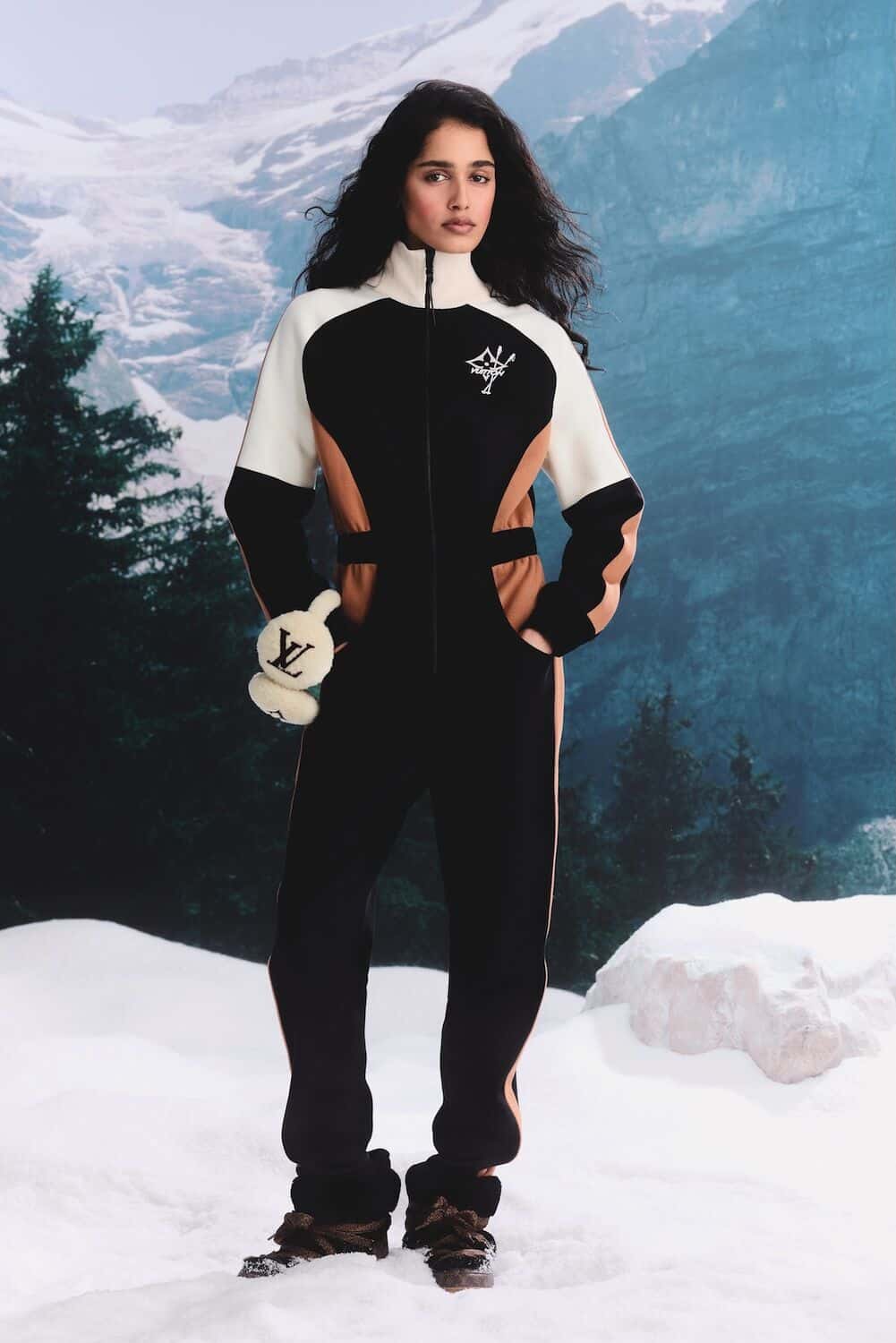 Louis Vuitton knows how to get both après ski and actual ski right, and its latest women’s ski collection is the undeniable proof. Think graphic salopettes, featherlight waterproof nylon and a coppery Monogram Miroir canvas glinting like glaciers at golden hour. Skiing has never looked so couture – or so ready for a champagne break halfway down the slope. Shop the offering here.
