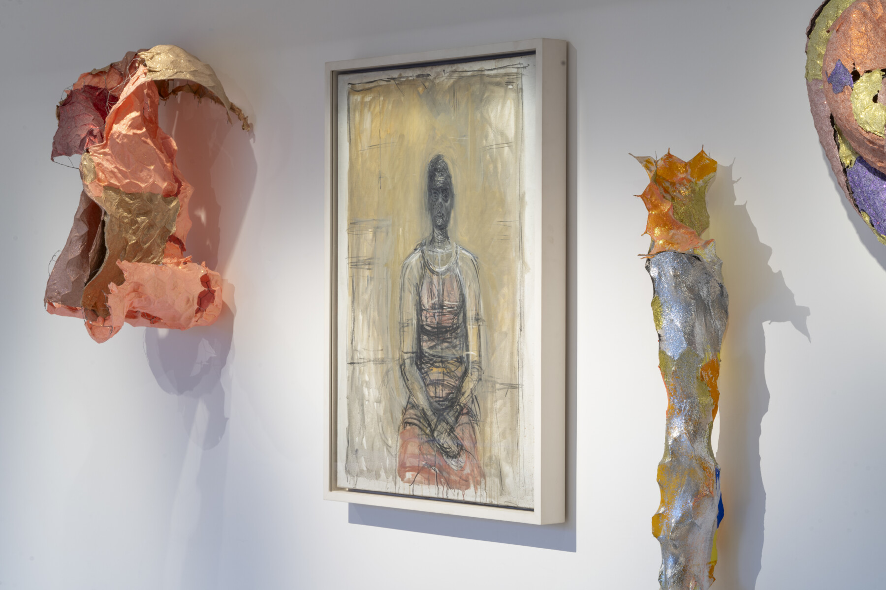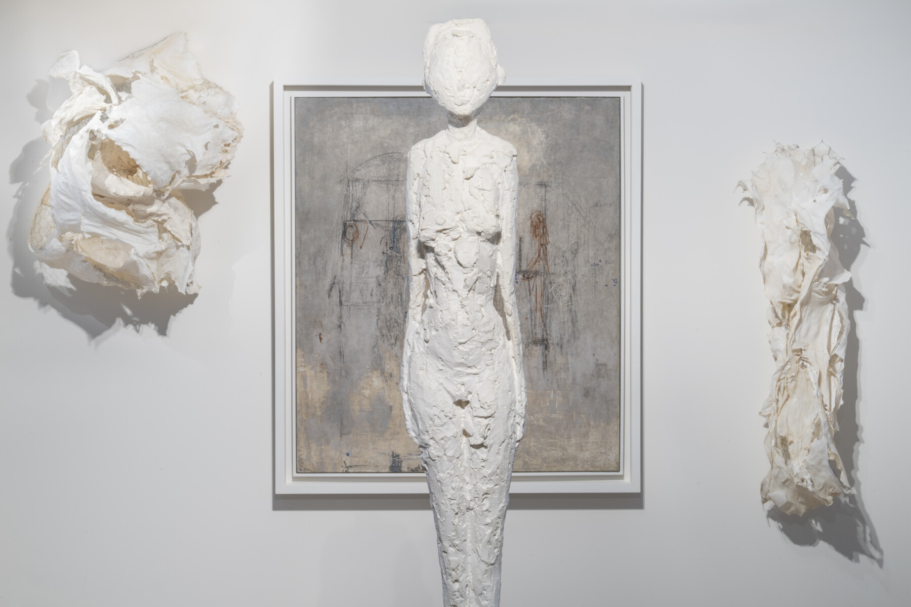 Here, her ghostly white paper reliefs – handmade over chicken wire and studded with cast sparkles, acrylic and coal tempera – leave her Santa Fe studio walls for the first time. Installed alongside fragments of Giacometti’s own studio, the show sets up a taut exchange: his attenuated, war-shadowed figures meeting her fleshy, erotic surfaces in a gallery that feels part stage set, part laboratory. Discover more here. Emily Phillips