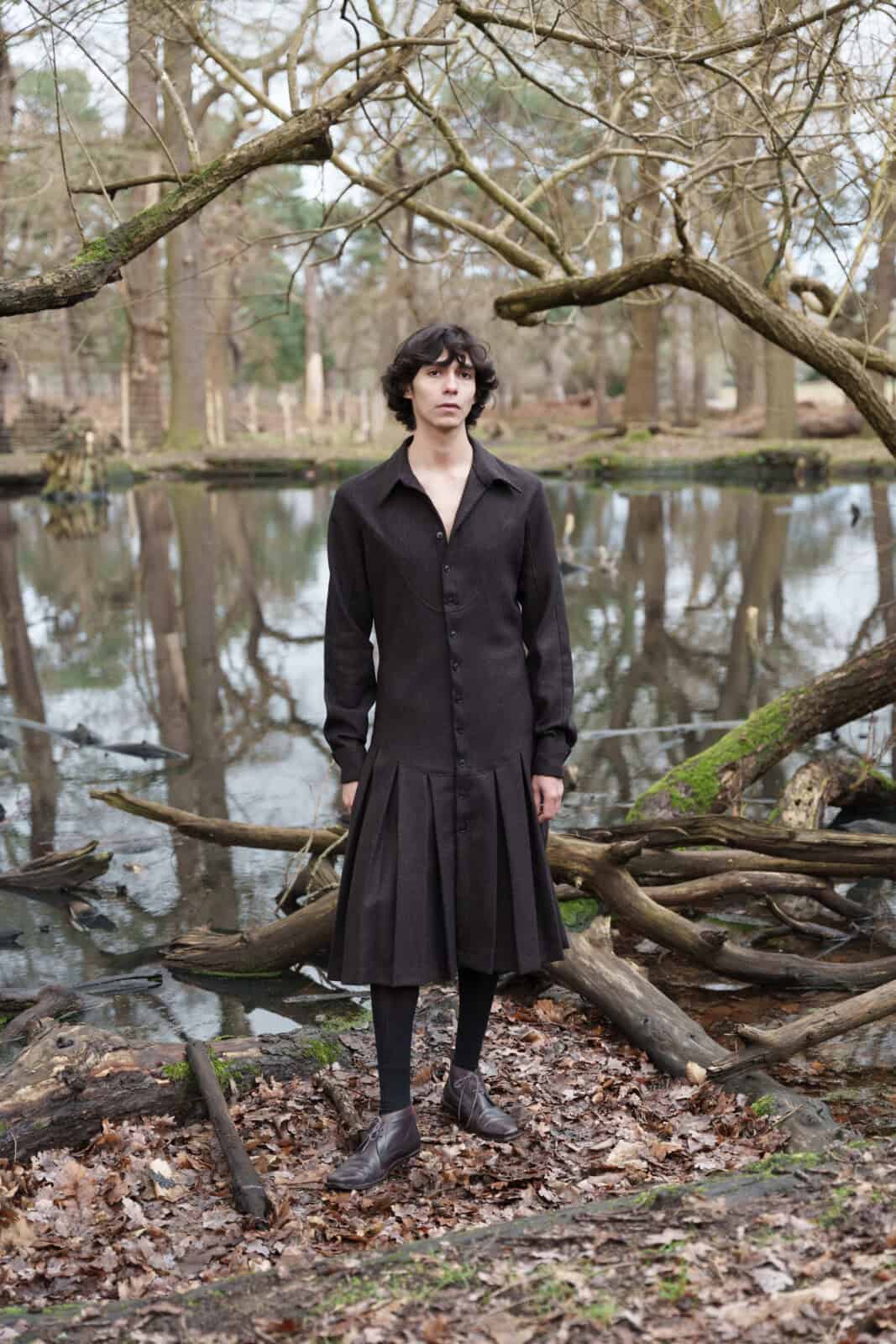 “The future of fashion is bright and it’s made-to-order” is what Albert Kingsley Meek’s AW26 collection appears to announce. The ESMOD Paris graduate (2019) spent his post-grad years working for the likes of Vivienne Westwood, Wales Bonner and Kwaidan Editions, only to launch his eponymous, London-based brand in early 2025. His philosophy: sustainable, ethically-crafted garments reinventing the gendered norms of traditional menswear. The brand’s AW26 collection pushes it all a step further, showcasing a series of looks made entirely of locally-sourced, unblended, low-impact materials or dead stock fabrics, each exclusively made-to-order. Among the most striking designs are a wool tweed pleated shirt dress, a textured linen double-breasted jacket with matching shorts and a candid ivory silk coat. The collection is out now and made-to-order with a two-to-six week lead time, with bespoke sizing available upon request. Shop here. CNB