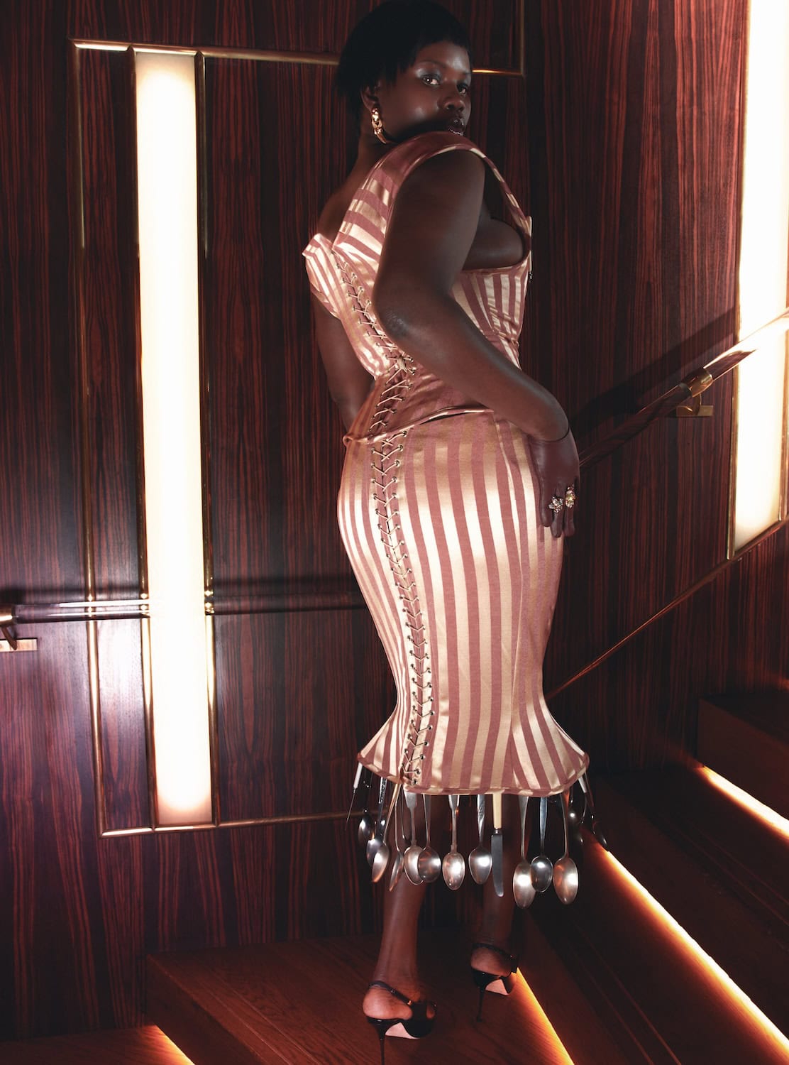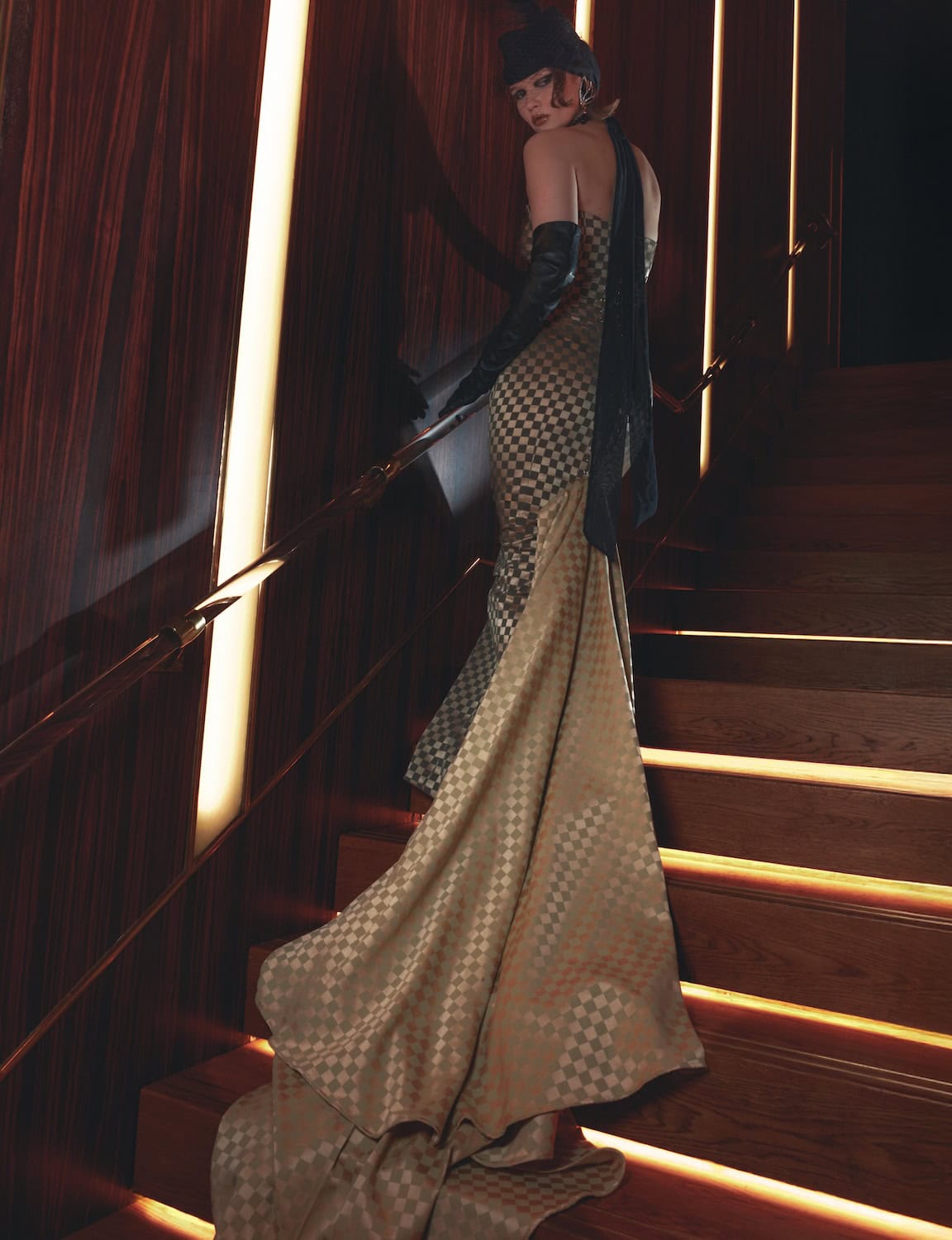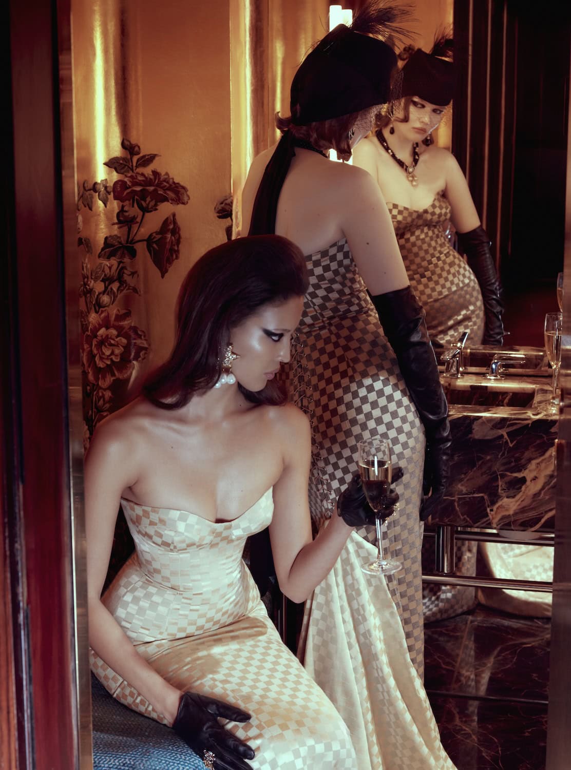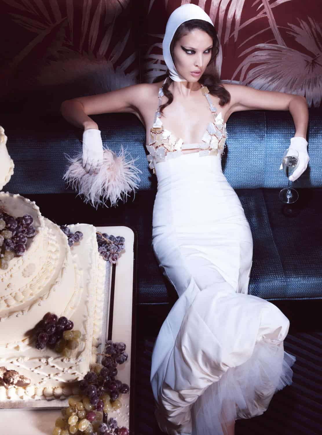 Let them eat cake! With It’s My Birthday, I Can Cry If I Want To, the latest demi-couture contemplation from Ellie Misner, the young London designer is turning her attention to the bittersweet contradictions of one’s anniversaire. The birthday girl arrives to her celebrations in a pristine gown of ivory silk adorned with mother-of-pearl buttons and beads aplenty but is immediately sloshed with a partygoer’s wine that swiftly dries into a crystallised golden stain. Misner’s corsetry is front-and-centre throughout the collection with two near-identical checkerboard dresses leading to social catastrophe, black and navy zipper dresses give way at the bodice to cast your eye to the hip and the designer’s parents’ 20-year-old curtains transform into an unusual “carpet” gown. The centrepiece, a white silk taffeta gown, embodies the traditional confection – the cake – as a pearly brassiere, made in collaboration with jeweller Amy Rileyhaus, cascades into a rounded mermaid tail. Not everything goes right, but this is a party we’re still dying to attend. Find out more here. JH