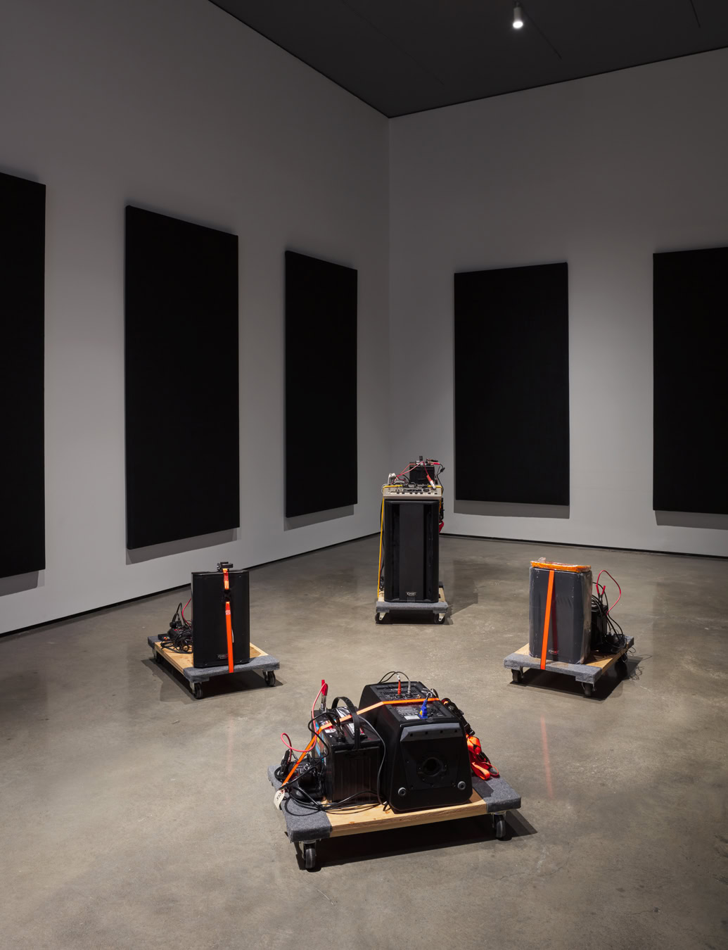 from left: ‘Code Switch: Distributing Blackness, Reprogramming Internet Art’ installation at the Museum of Contemporary Art Detroit, 2025 and ‘Back to Back’ installation at Hessel Museum of Art, Center for Curatorial Studies, Bard College, Annandale-on-Hudson, 2022