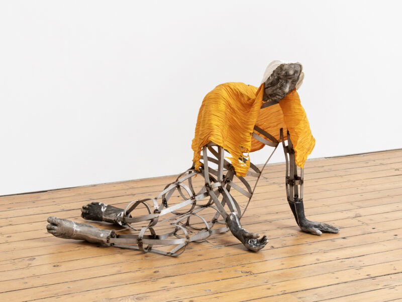 For Kira Freije’s solo show at The Hepworth Wakefield, Unspeak the Chorus (running to May 4), her emotionally potent sculptures trace the outline of human forms. She begins by casting her own hands and feet in aluminium, building from the ground upwards using stainless strips. They grow limbs almost as if a sketched outline, while the faces are cast of people close to her, as with closed eyes they become introspective. “I quite like the idea that people might embody them when they’re around them,” Freije tells me. “They’re not really confronting, though they’re not weak, they’re quite internal. I think they allow you to get sucked in and because so often you fill in…” Even when talking, her statements tail off, as if leaving space for you to do the work to complete her thought. The figures come together to form a community or a world, interacting with each other as if an example of a society at work. To me they raise ideas about morality and participation, the roles we play living among others. “At The Hepworth, to have this incredible situation to form a community, you can actually feel it,” Freije says. “They are quite individual, but they do form a whole.” Her work asks you to subtly explore ideas so pertinent to today, giving you space to think about the times we are living in and perhaps moving you to question your role on an emotional and internal level.