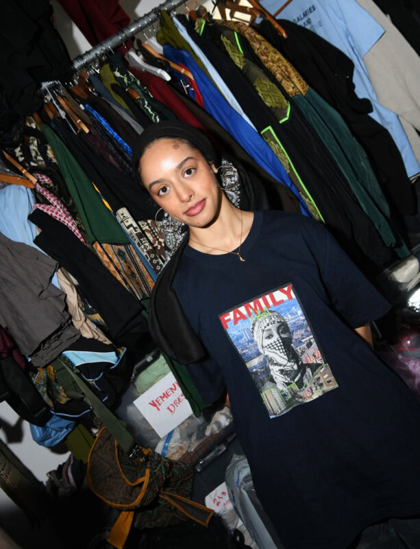 “Growing up, I never heard a positive thing said by the media about Muslim women and Arab culture. Part of my work is showing my community in a positive light and making others realise how cool and resilient these women really are,” she tells me. Importantly, this heritage does not fetter her creativity or invite conformity. When we meet, she’s wearing a roomy sweater, with a wide black shawl partially shrouding her raven hair. I ask about her headpiece. “It’s a mashada,” she explains. “Normally, men would wear it in the Middle East, but I like it.” Tradition, here, becomes a tool for experimentation, not regression.