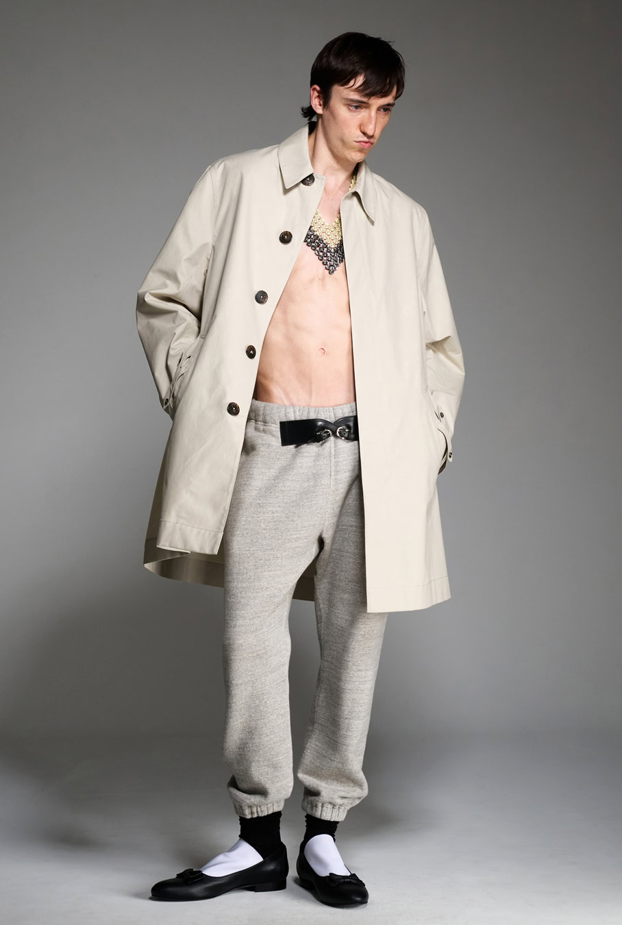 With Stefan Cooke, however, preppiness has been a subplot, albeit an enduring one. Take SS26, when the designers, Cooke and partner Jake Burt, presented cut-out cricket sweater necklines on bare flesh, ballet-pump loafers with sweatpants and a smattering of collegiate stripes. Explicit or not, the upper echelons of British schooling were present and, again, queered.