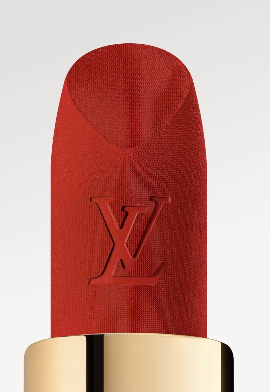 clockwise, from top left: LV Rouge lipstick in Dance on Mars 605 by LA BEAUTE LOUIS VUITTON; LV Baume lip balm in Tender Bliss 030 by LA BEAUTE LOUIS VUITTON; LV Rouge Colourlock System by LA BEAUTE LOUIS VUITTON; LV Ombres eyeshadow palette in Monogram Rouge 896 by LA BEAUTE LOUIS VUITTON