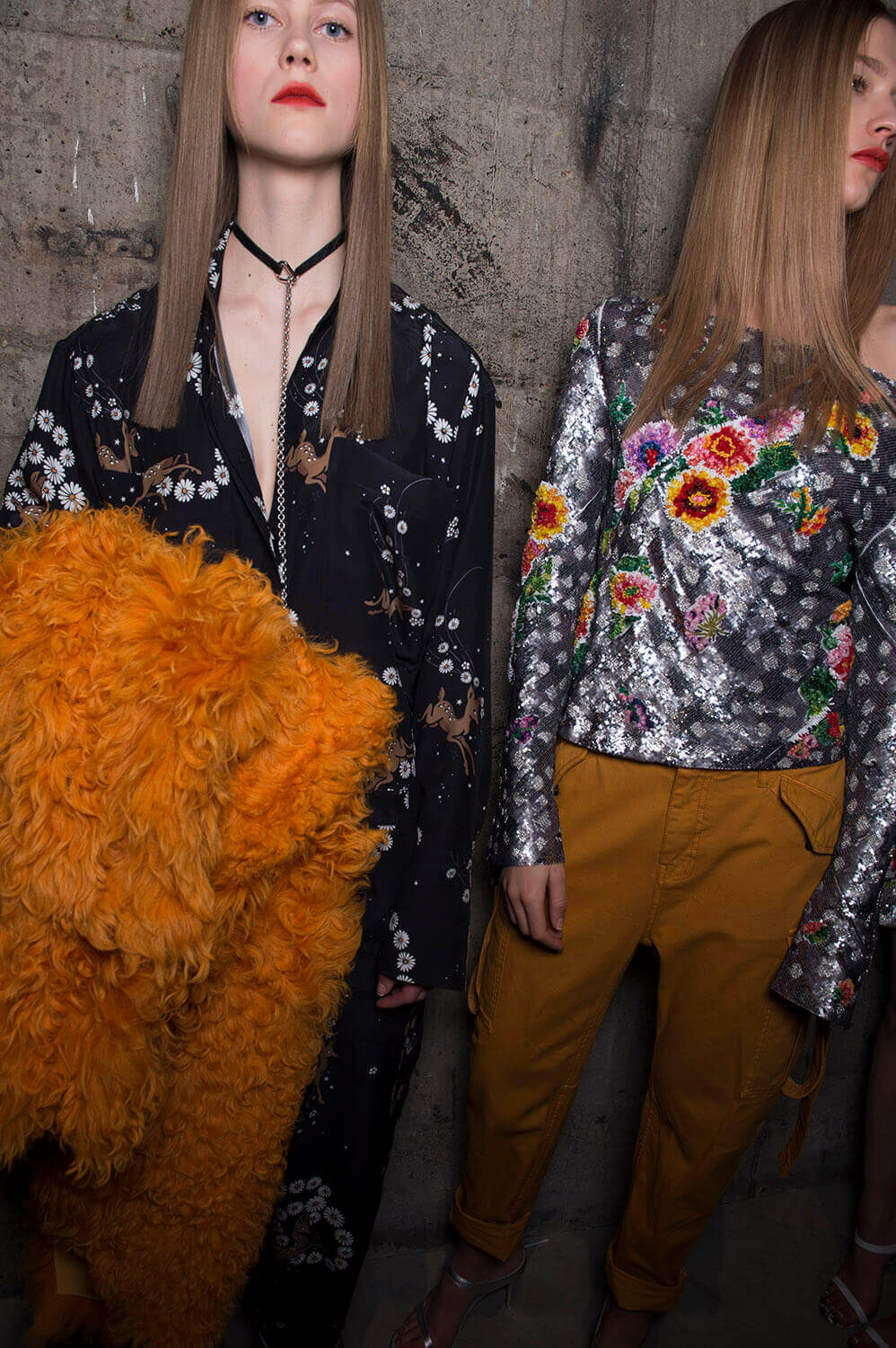 “She’s never been here before. She’s intrigued, searching for more,” so begins the press release for this afternoon’s AW17 Topshop Unique show. Think of her as a bit of a traveller. Experiencing feelings of “euphoric freedom,” apparently. But what about the clothes? Well, this was a bit rave. Which we know sounds a bit of a lazy reference but we’re not referring to rave in a glow stick and fluoro sort of a way, heaven forbid. More Hacienda. Madchester. We think. Ask Phoebe, she knows more about stuff like that. And not just because it was written in the notes and there was some Stone Roses on the soundtrack. It began with Lily Donaldson in a sweater emblazoned with HAPPY WKNDR and a billowing striped trouser. There were parkas, belted at the waist but here left undone, zip-up track tops. Bags that had a touch of the fanny packs to them. A giant fluffy orange number. An amazing shearling jacket. Something of the gap year to it too. A bit holiday. The Beach, before people starting getting murdered and stuff. Swimming costume-cut bodysuits, worn-in ponchos, floral dresses slit up the front. But really, it was a bit of a pick ‘n’ mix. Because who only wants one thing? Sexy sexy dresses in a silky fabric that curved around the body, proposing the upper arse as the new erogenous zone du jour. Sheer tops embroidered with flowers and worn with over-dyed wide leg jeans. Or the silky, almost Courtney Love-esque slip dresses, her reformulated to cling to the body. Clothes for everyone. For every occasion. Or, to quote the press release, “a digital explorer, she could be anywhere – Ibiza, Goa or speeding through West London.” And what more could you ask from a collection than that?