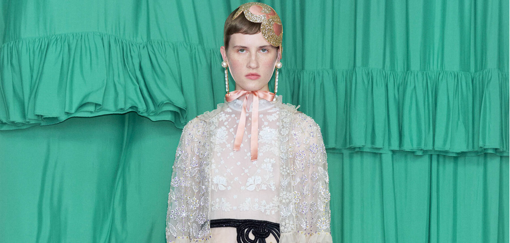 Swept with echoes of 1920s Parisian glam, the Valentino fall 2025 co-ed collection by Alessandro Michele is a truly wonderful expression of the designer’s eclectic vision for the house. Models, with slick, waved hair, don pastel hued layers of lace and silk that take shape as dresses, pussy bow blouses and decadent, tiered skirts. Sequins and florals are rife, while pugs and kittens pepper knitwear, adding a healthy dose of playful flamboyance to the offering. Elsewhere, chic clutches and velvet or tweed crossbody bags decorate the extravagant looks, which come underscored by vibrant pantyhose and glitter slip-on heels.