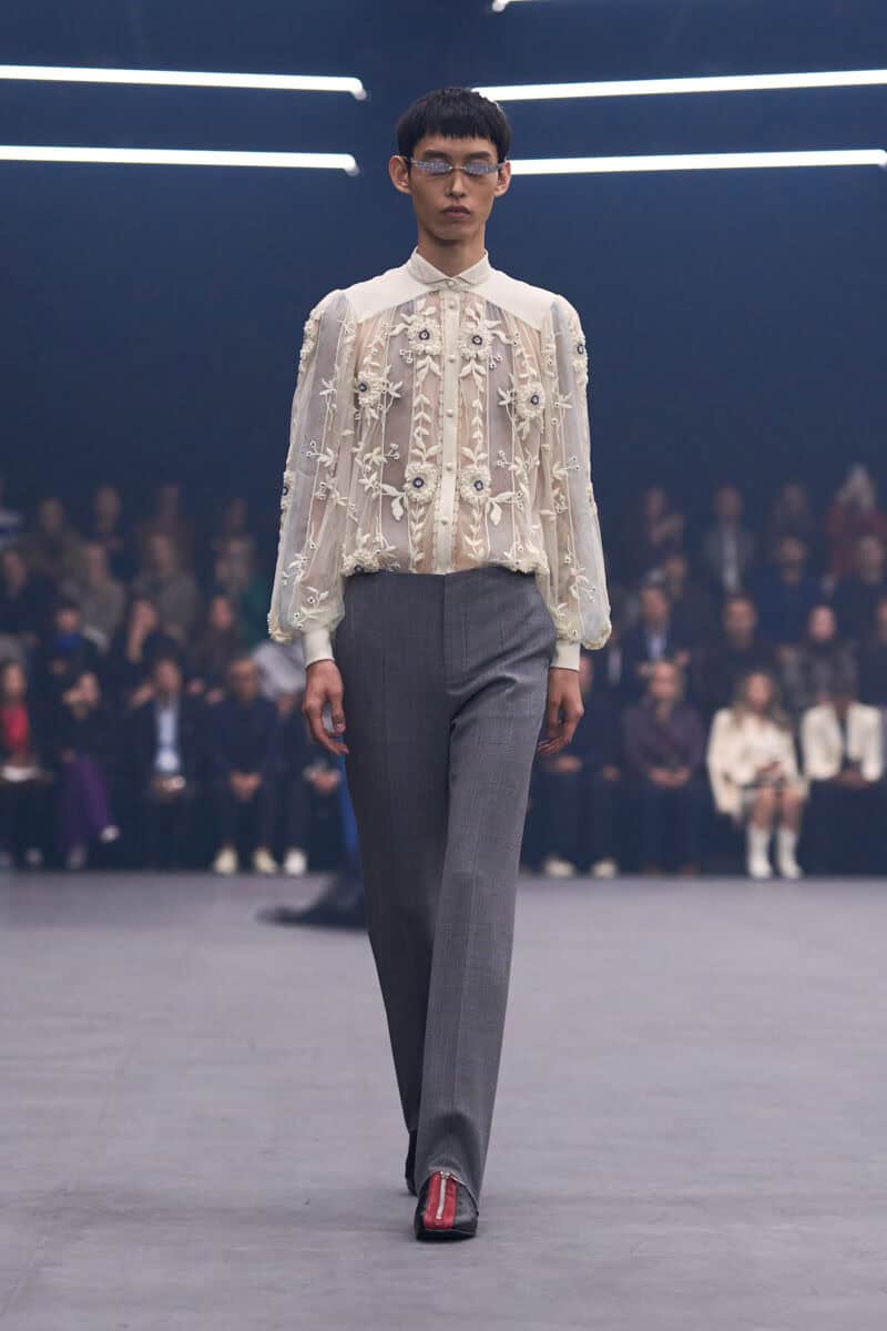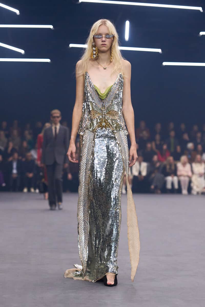 Alessandro Michele is a romantic and thinks like a poet. He framed his show with a self-penned essay about the film maker, actor and poet, Pier Paolo Pasolini who used fireflies resisting the darkness of night as a metaphor for resistance against fascism and its cultural flattening. Michele believes fashion can also be a bright spot in a dark world, if it’s beautiful and transporting enough.