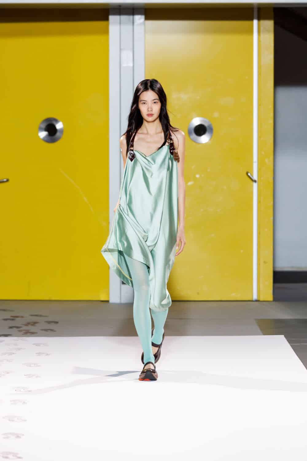 When fashion goes smaller, Zomer goes bigger. The womenswear label helmed by duo Danial Aitouganov and Imruh Asha, presented its SS26 collection – Collection 05 – which eschewed minimalism and instead tapped into the tension between playfulness and sophistication.