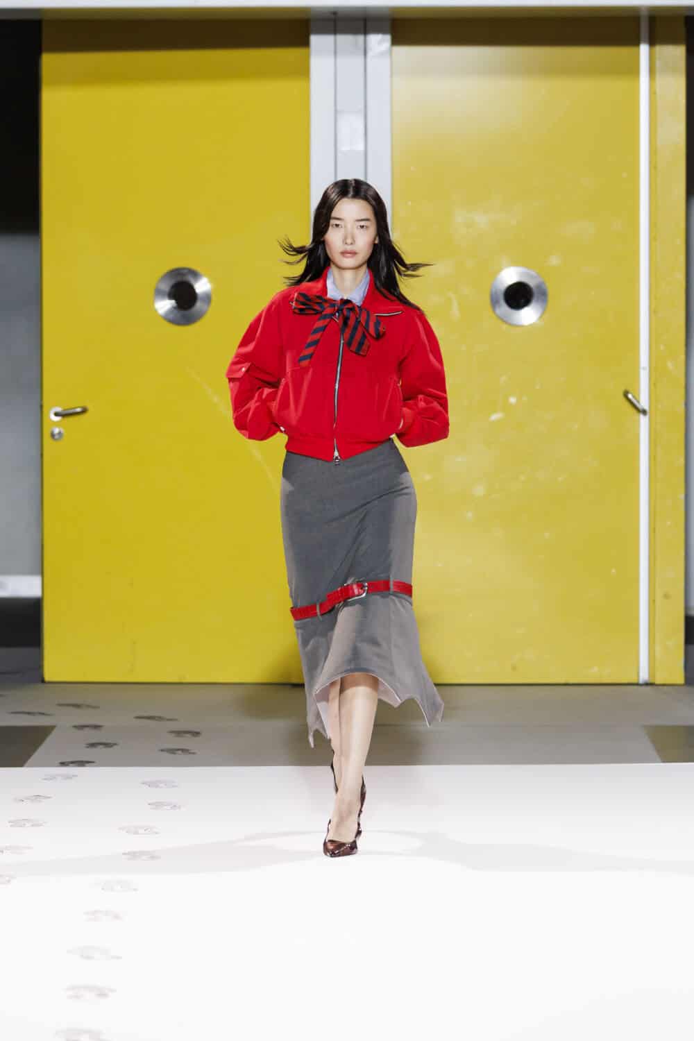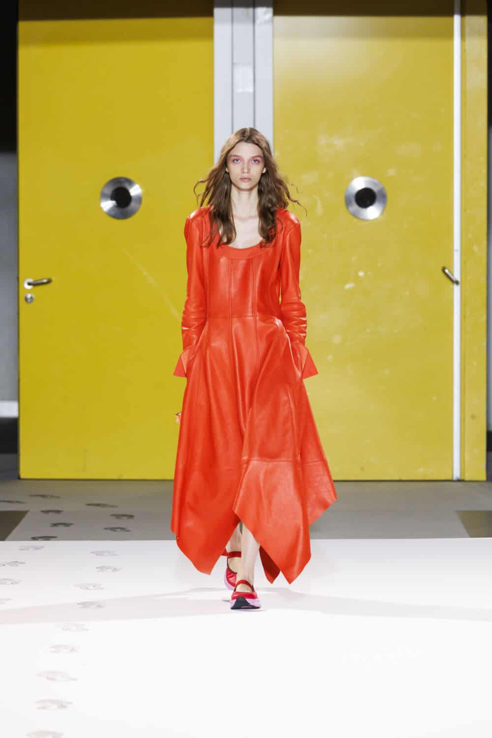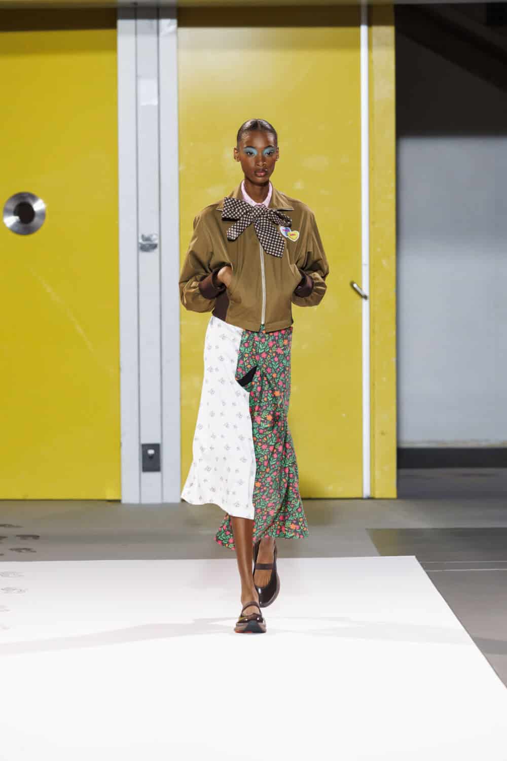 First out were eye-catching leather jackets that morphed into billowing skirts, colourfully pleated and cut. These were followed by a fiery leather dress before shifting into relaxed suits and shirts that played with form and function. A-line dresses breezed through. Capris and khakis emerged in funky patterns. Bow ties dramatically reimagined appeared on the neckline of almost every top and jacket throughout.
