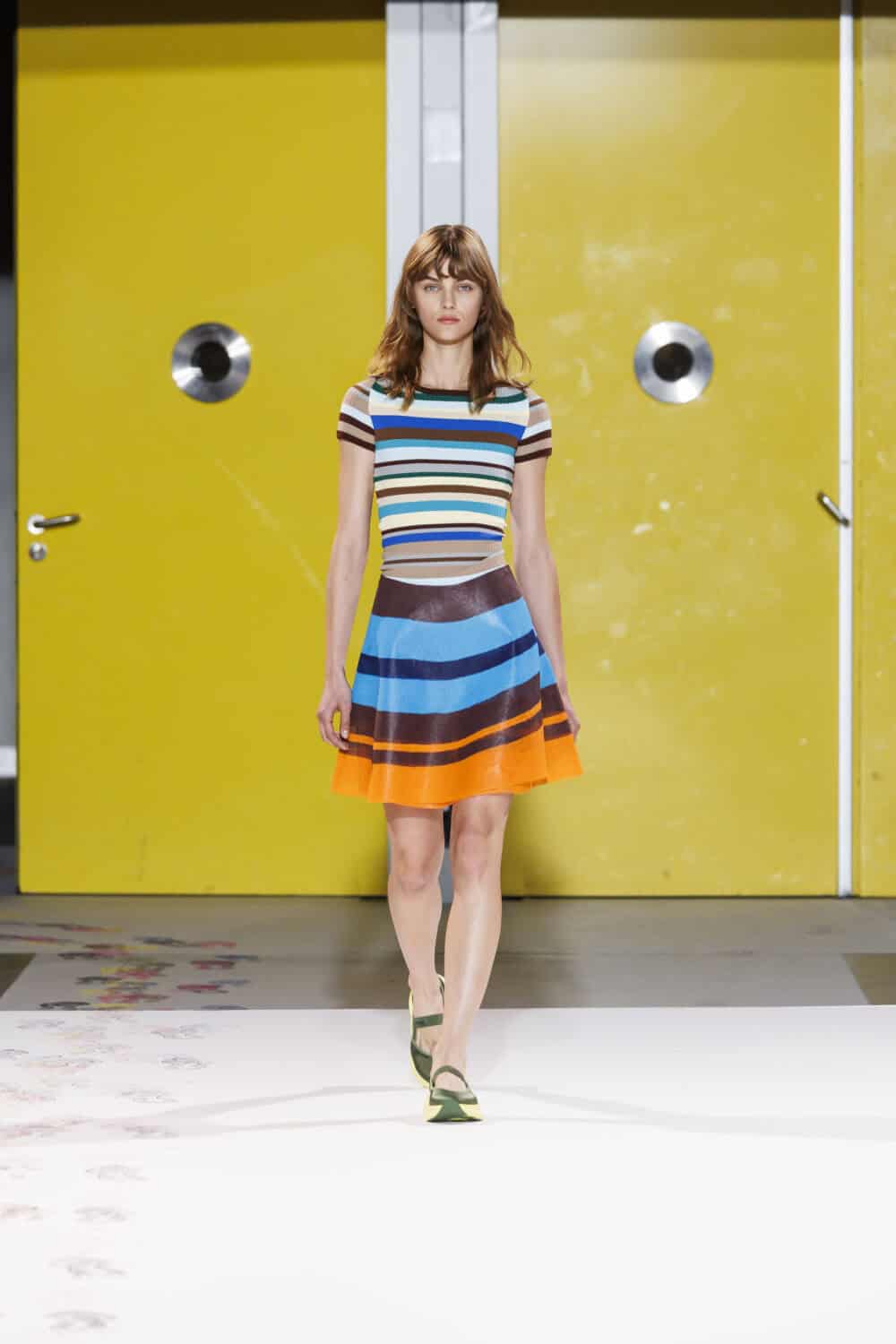It was a mix and match collection served with an extra large side of humour. Enter: the belts. Supersized and wrapping around models from ribs to hips. Next came a colossal claw-clip-cum-crop-top that would require at least two people to operate it. There were stripes in varying breadths and mismatched colours, paired with skirts upon skirts (literally). In a striking combo, snake skin was layered upon a flower patterned cotton tube dress.